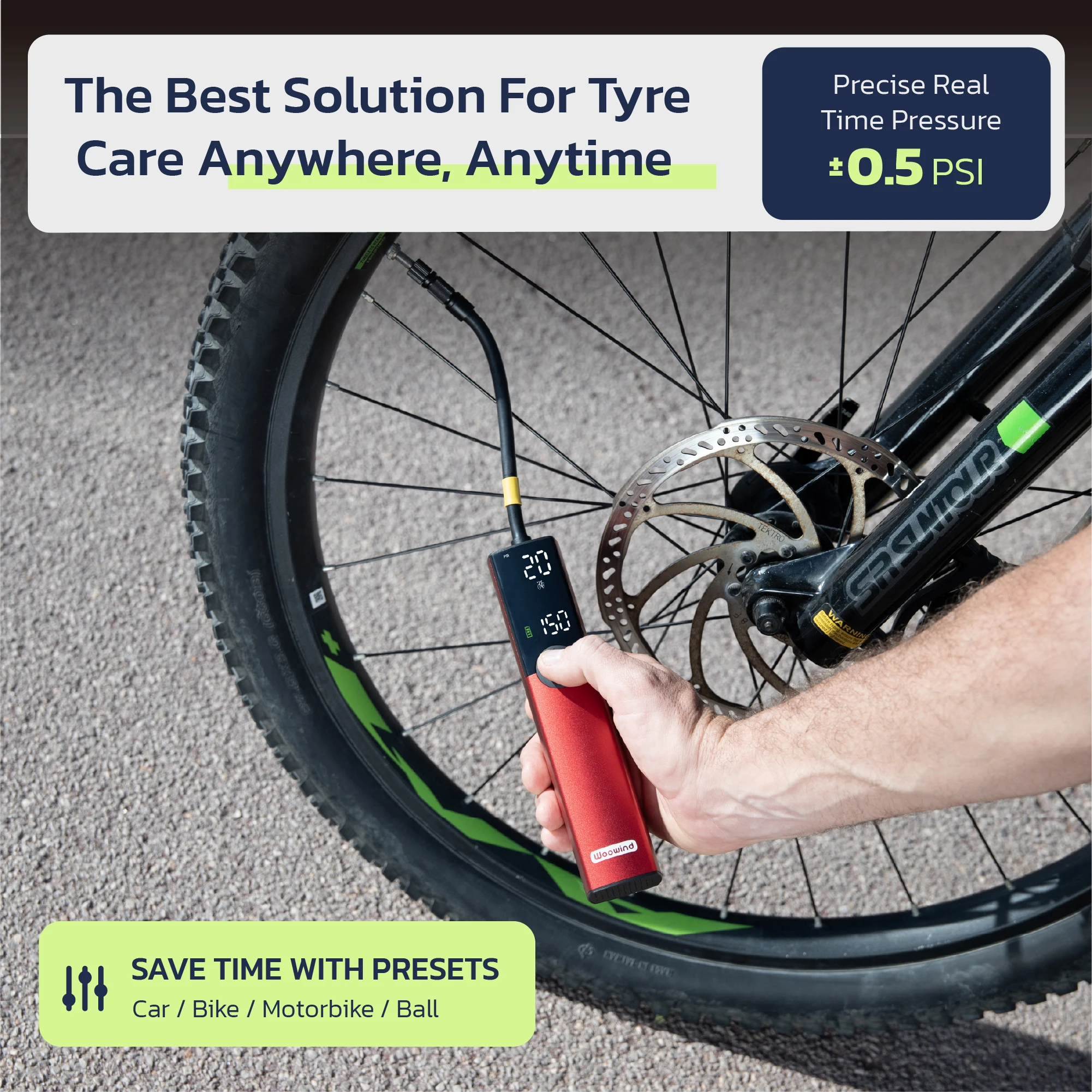 Digital Display with Dual-Pressure: This bicycle pump boasts a large screen with dual-pressure display to show both preset/target air pressure and "real-time" air pressure so it doubles as a digital pressure gauge