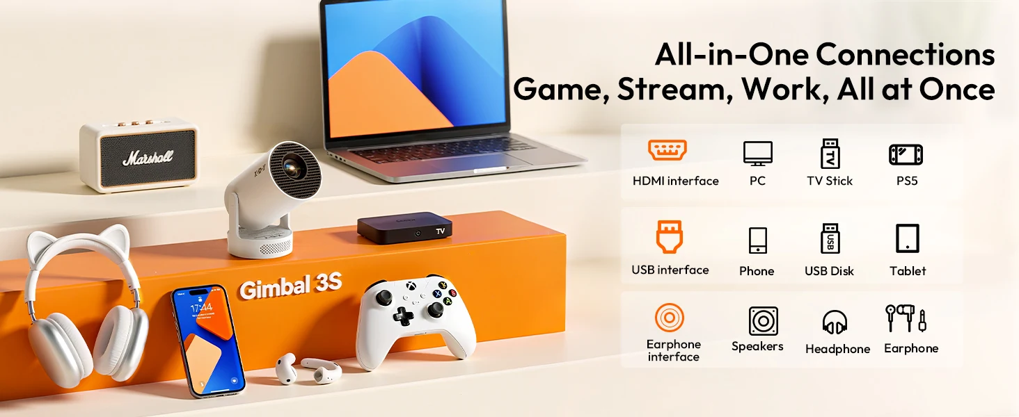 HD projection with 4K compatibility – Experience stunning visual effects with this mini projector featuring 1080P resolution, 4K support, 12000 lumens of brightness, and a projection screen. From 40–150 inches. Transform any room into a personal home theater.