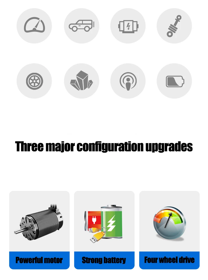 B.28cm size version, ratio 1:16, 4WD without LED lights, remote control range of about 50m; C.20cm size version, ratio 1:16, 4WD without LED lights, remote control range of about 50m.