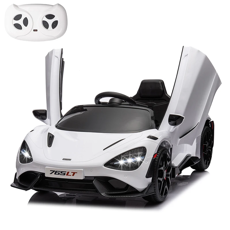 【Ideal Christmas Gift for Kids】: The Licensed McLaren765LT kids electric car comes with bright headlights, realistic taillights, built-in music and car horn,etc,suitable for toddlers aged 3-5 years with a maximum weight capacity of 55 lbs