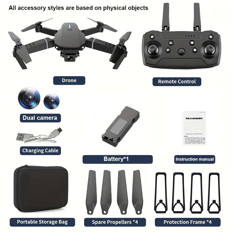Up/down, Forward/backward, Turn left/right, Sideward flight, 3-level flight speed, LED Light, Headless Mode, One Key Automatic Return, Altitude Hold Mode, WiFi FPV, Trajectory Flight, Camera/Video