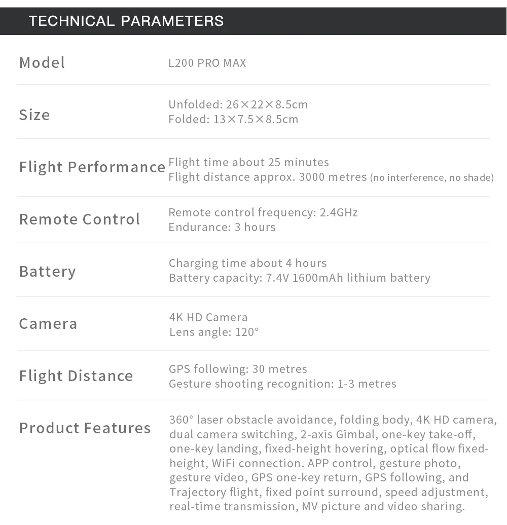 1. 360° laser obstacle avoidance, 2-Axis gimbal, automatically detect obstacles within 20 meters, making flight safer. (obstacle avoidance device optional).