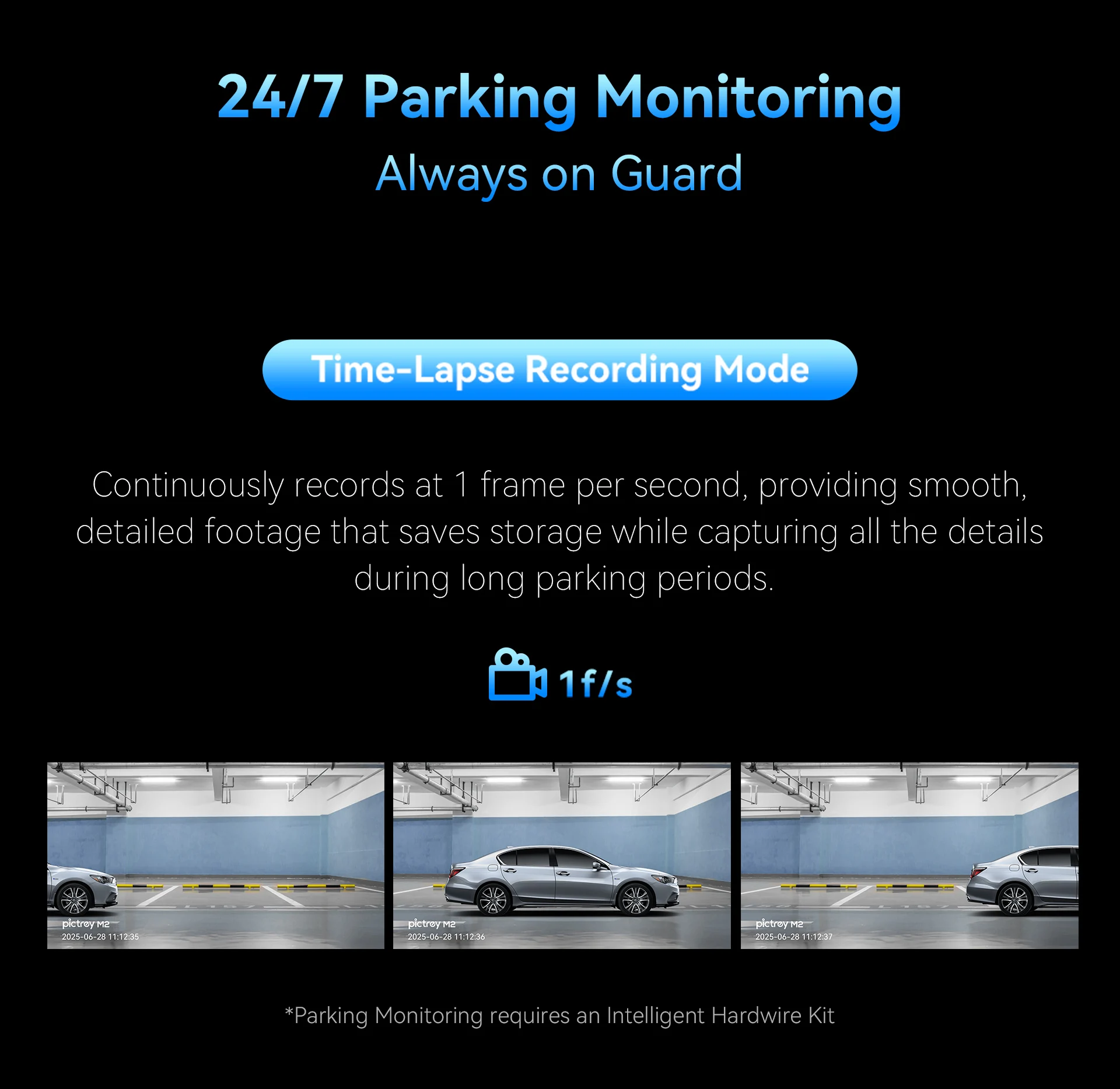Continuously records at 1 frame per second, providing smooth, detailed footage that saves storage while capturing all the details during long parking periods.