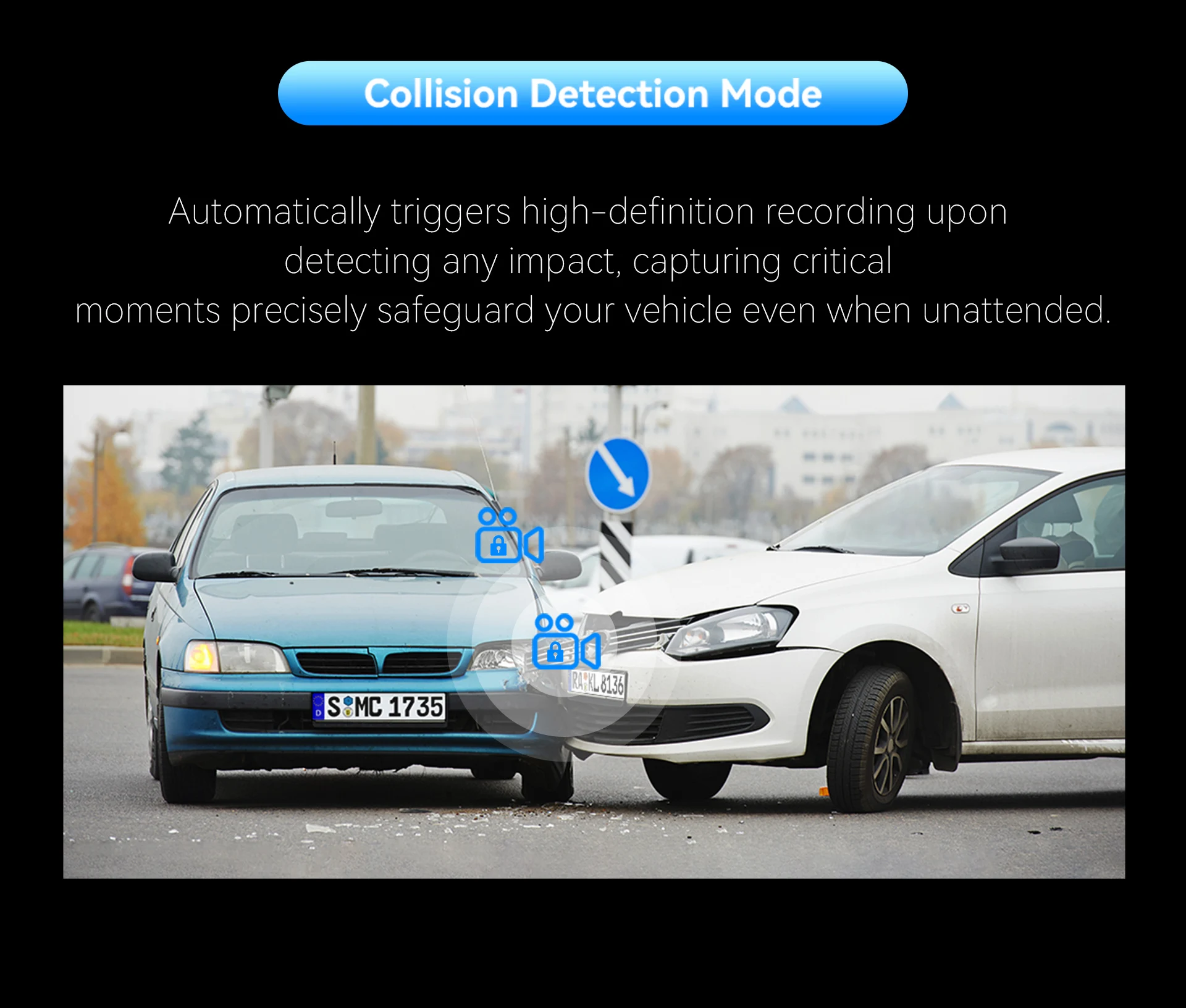 Automatically triggers high-definition recording upon detecting any impact,capturing critical moments precisely safequard your vehicle even when unattended.