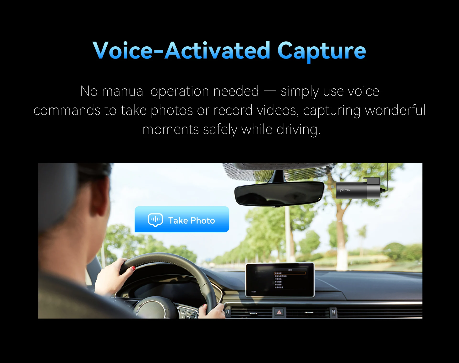 No manual operation needed – simply use voice commands to takephotos or record videos, capturing wonderful moments safely while driving.