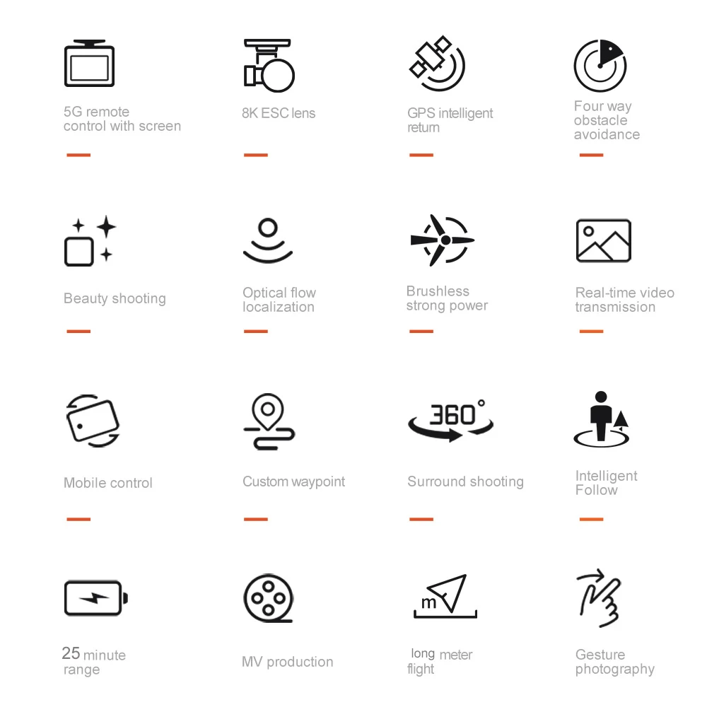 2. ①GPS intelligent tracking; ② Image tracking: identify the subject and automatically track the flight
