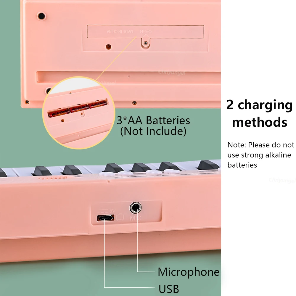 1. The A-37Keys piano: With microphone, this electronic piano keyboard is equipped with a complete 37 key keyboard, built-in 16 demonstration tracks, 8 dynamic songs, speakers and microphone. Children can play and sing to music with a microphone. Cultivate children's musical talent and children's stage performance from an early age.