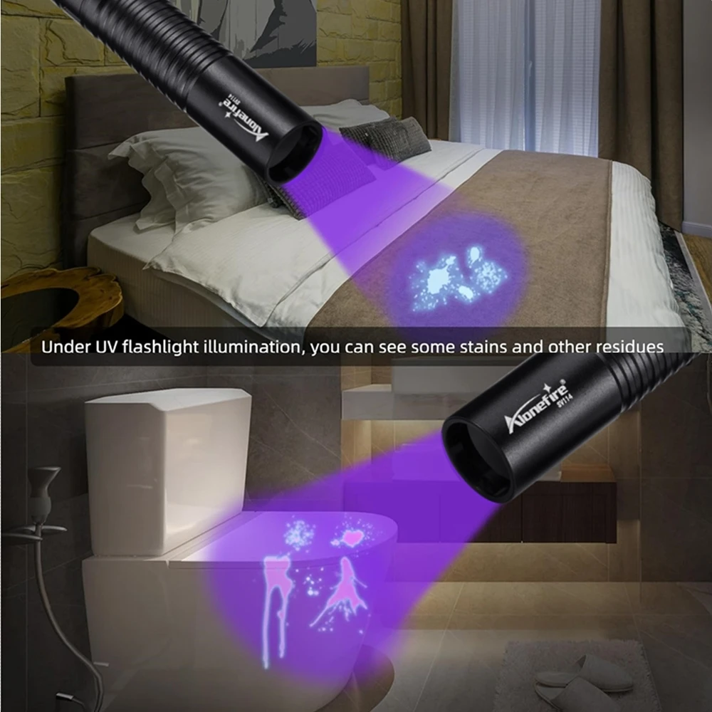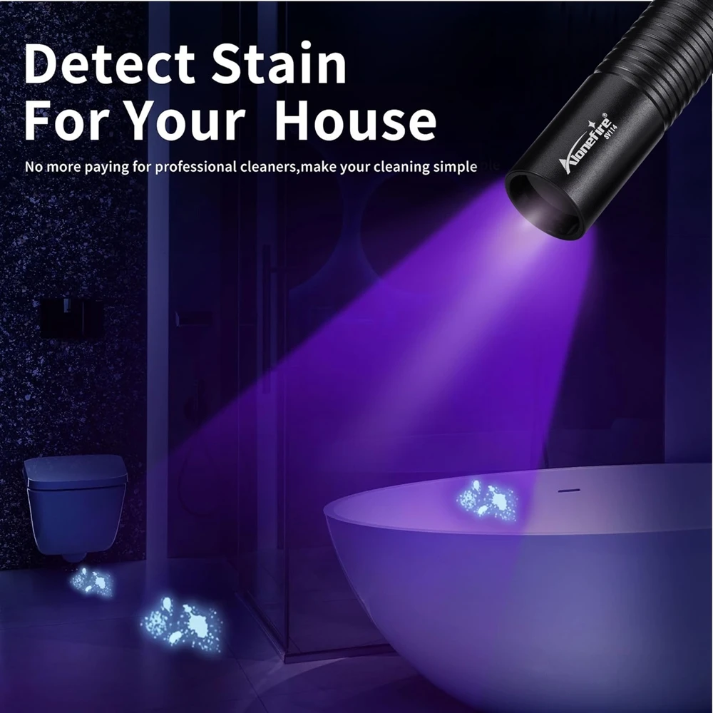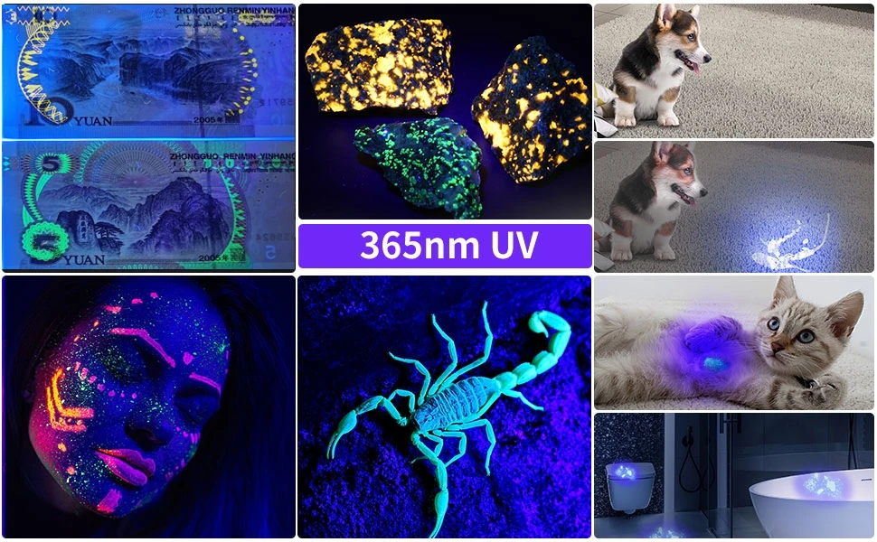 The Ultraviolet flashlight can be used as pet (dog/cat) urine detector/scorpion finder/fluorescent/detector/currency/license/card/ passport authenticating/oil stains/leakage detector/ore/antique identification/UV glue curing/ect.
