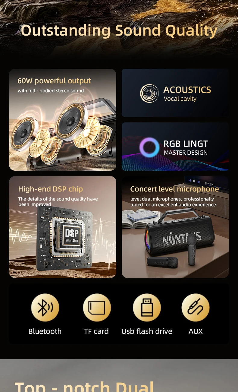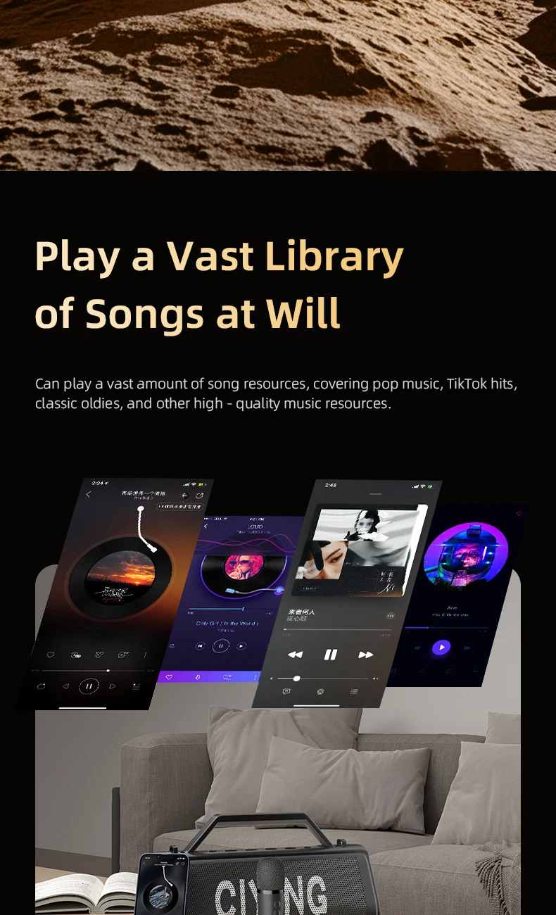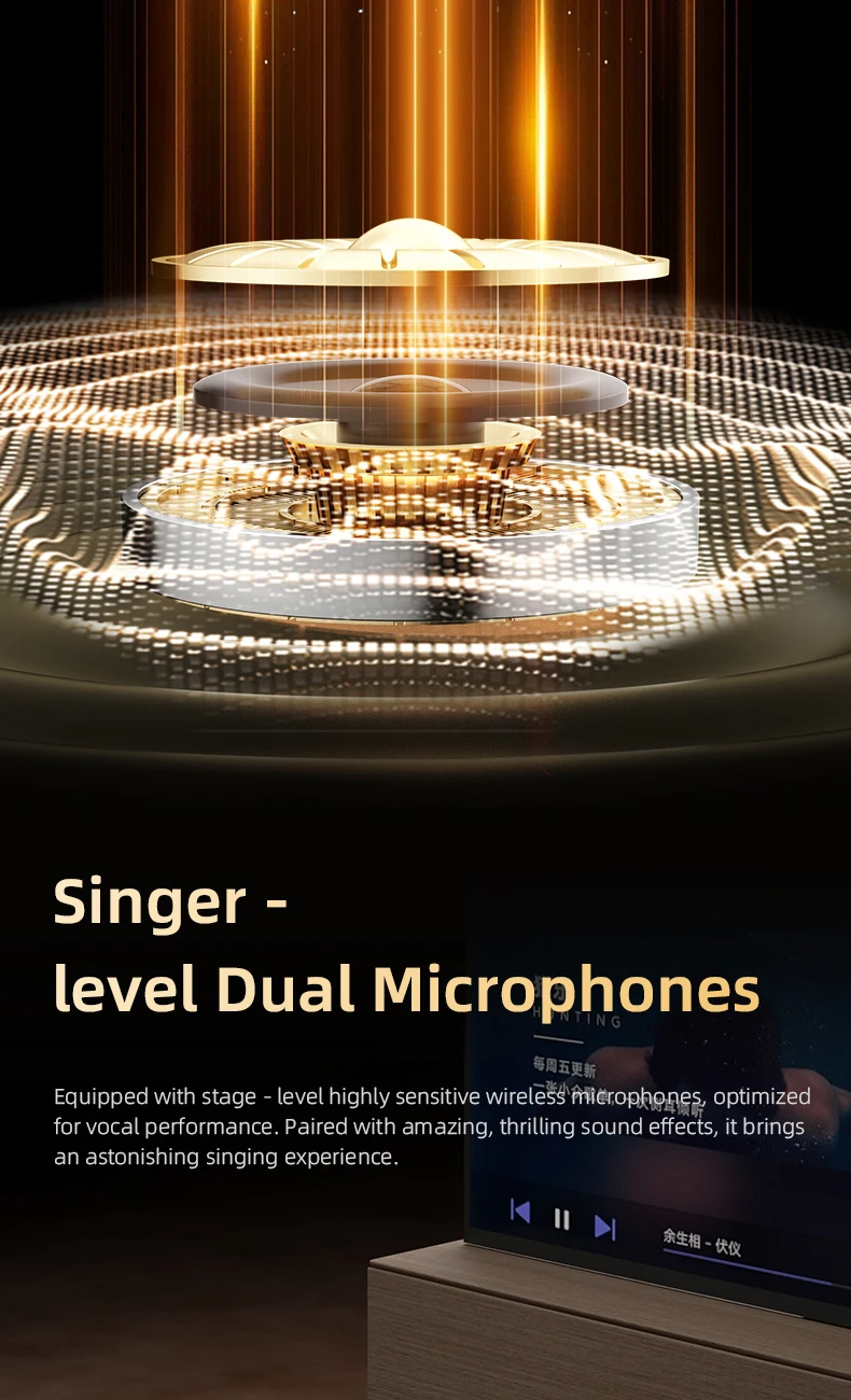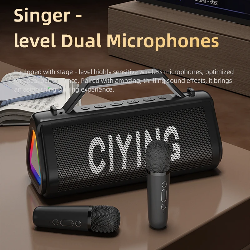 (1)Immersive Sound Experience: karaoke machine equipped with 60W 2 drivers and advanced technology that delivers powerful, well-balanced sound with minimal distortion. Whether you’re belting out classics or the latest hits, expect rich bass, crisp highs, and an overall balanced audio profile that transforms your home or party into a karaoke stage. Say goodbye to muffled voices and hello to an immersive singing experience!