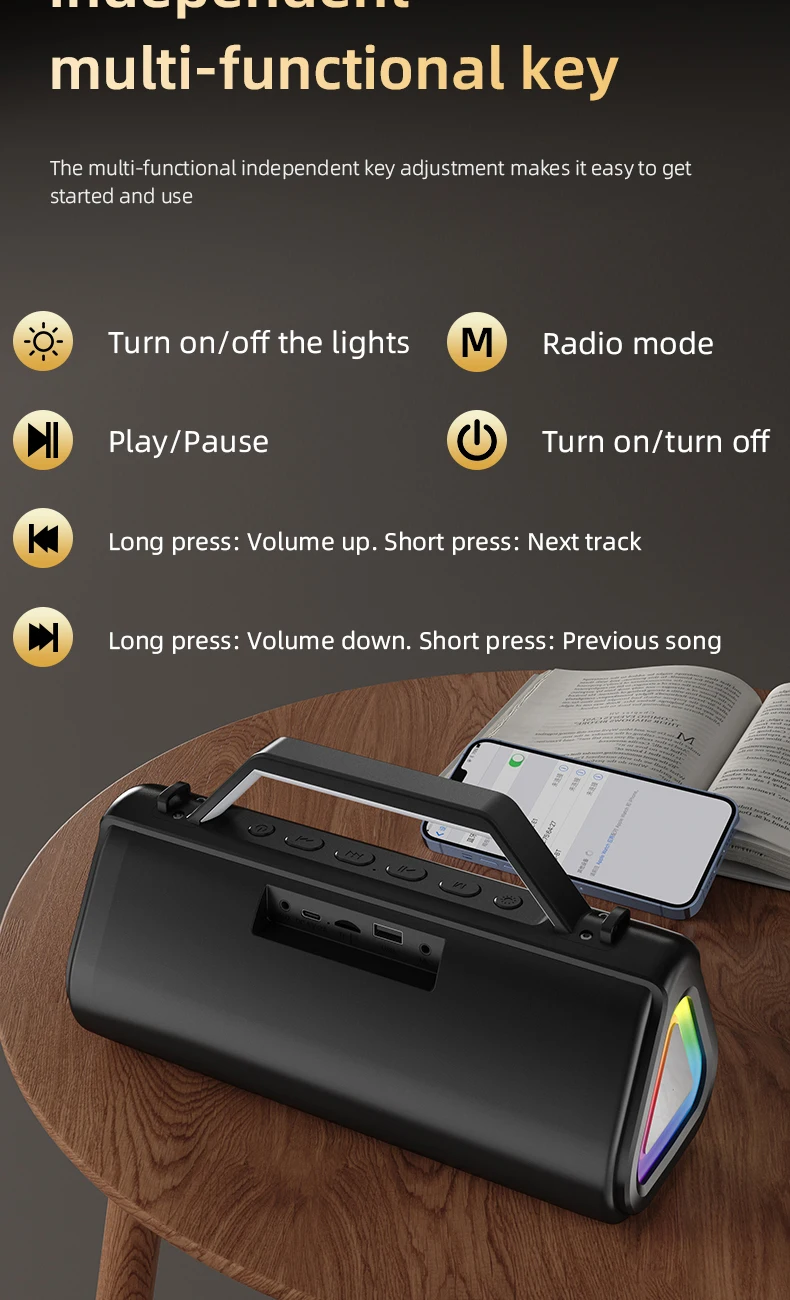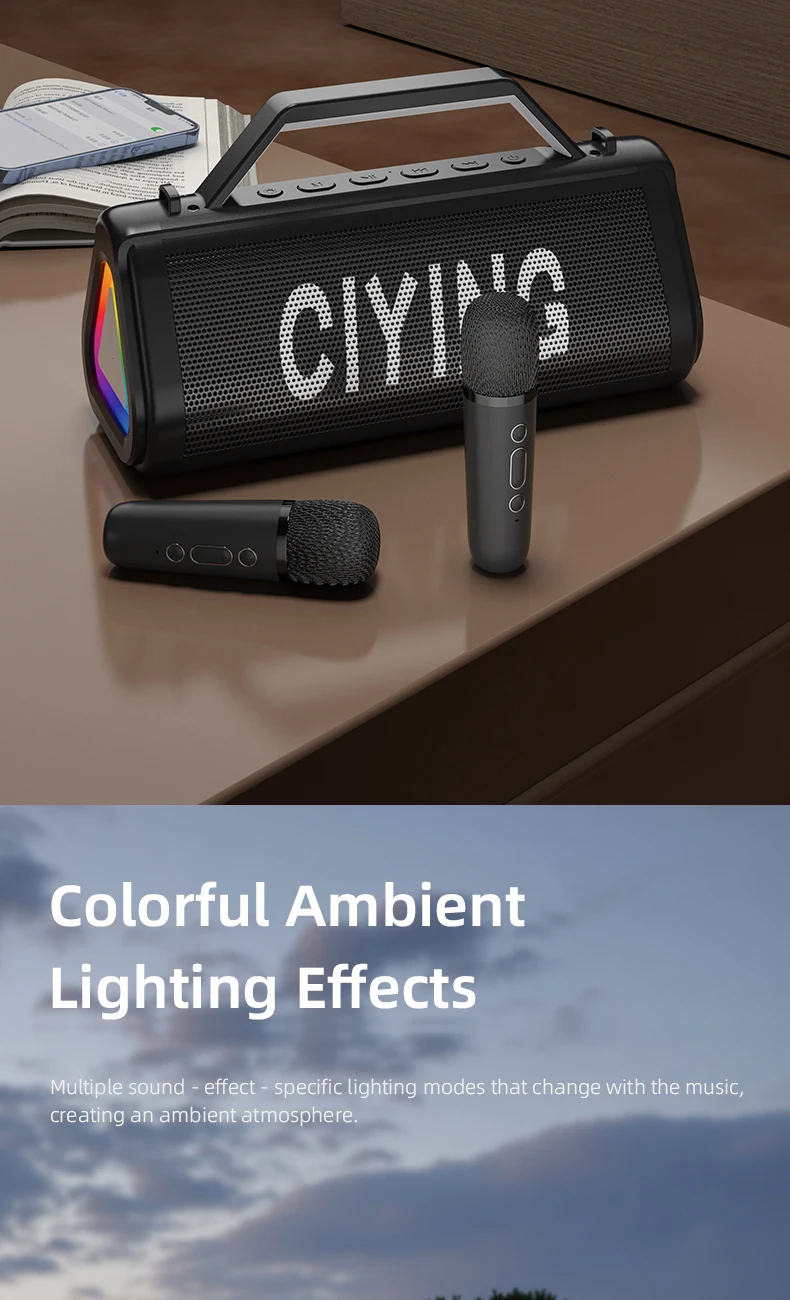 (3)Dazzling Light Show: The karaoke speaker player features vibrant LED lights that synchronize with the rhythm of your music, creating an exciting atmosphere that elevates your singing experience. Perfect for parties, gatherings, or just a fun night with family and friends, the light show adds a festive touch that will surely impress your guests and keep the energy high all night long.