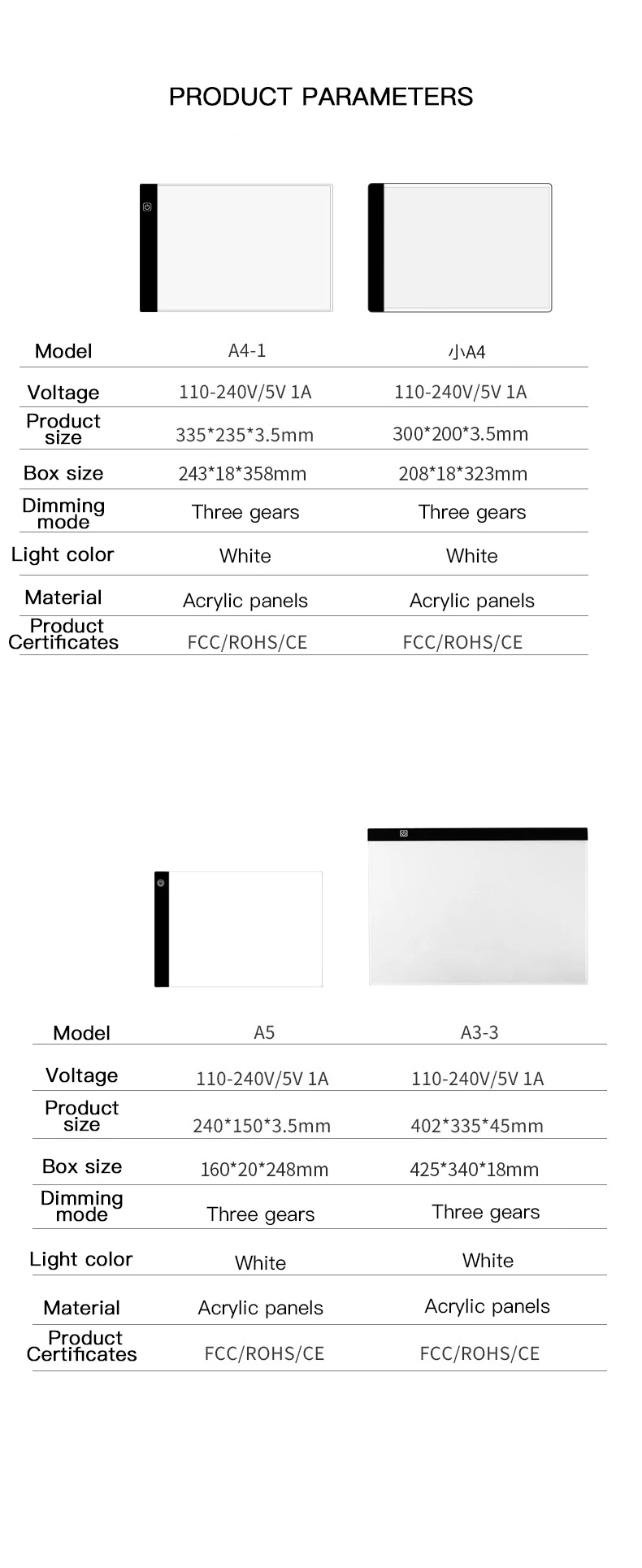 Style:Three level dimming LED drawing board