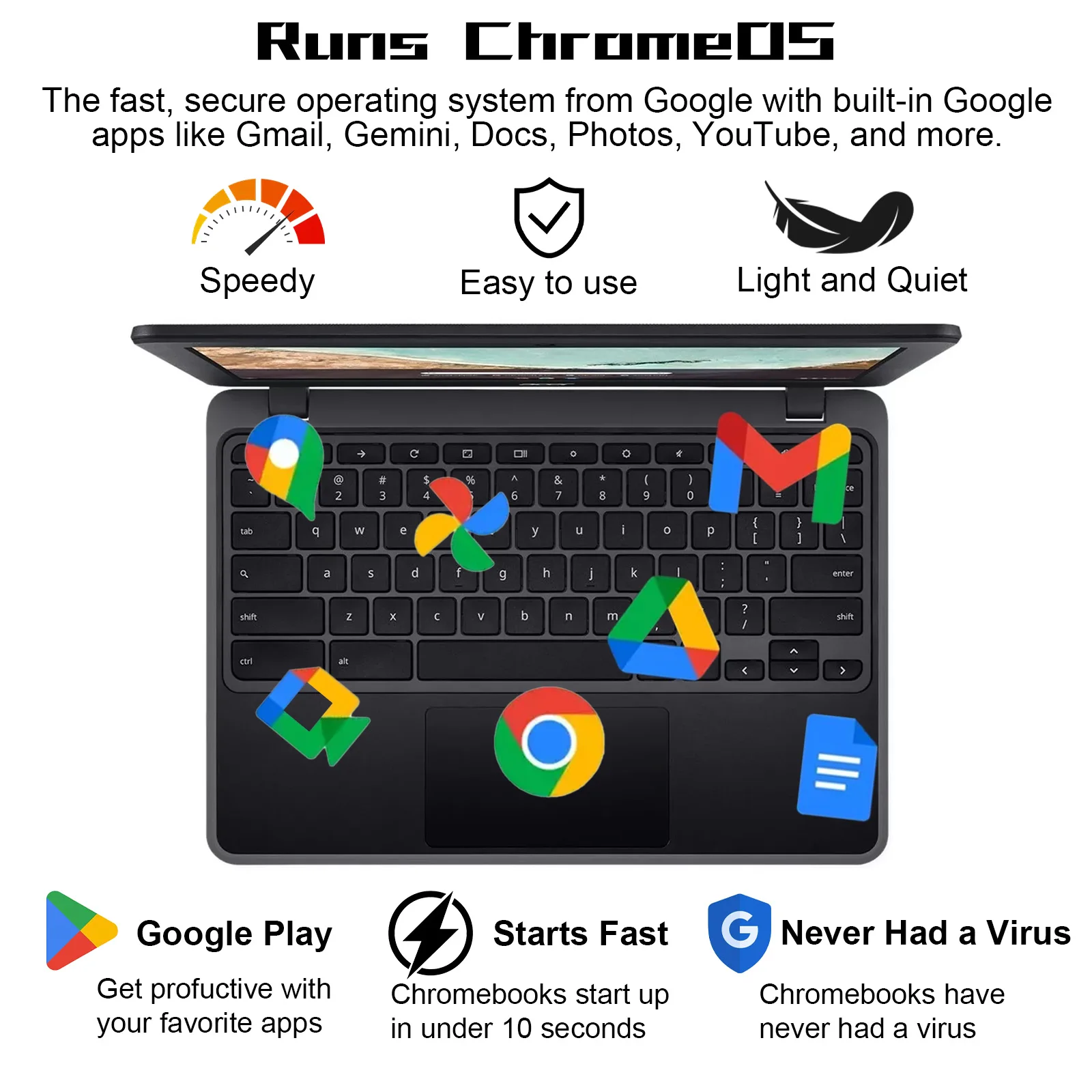 The fast, secure operating system from Google with built-in Google apps like Gmail, Gemini, Docs, Photos, YouTube, and more, so you can go from deadlines to downtime straight out of the box. -