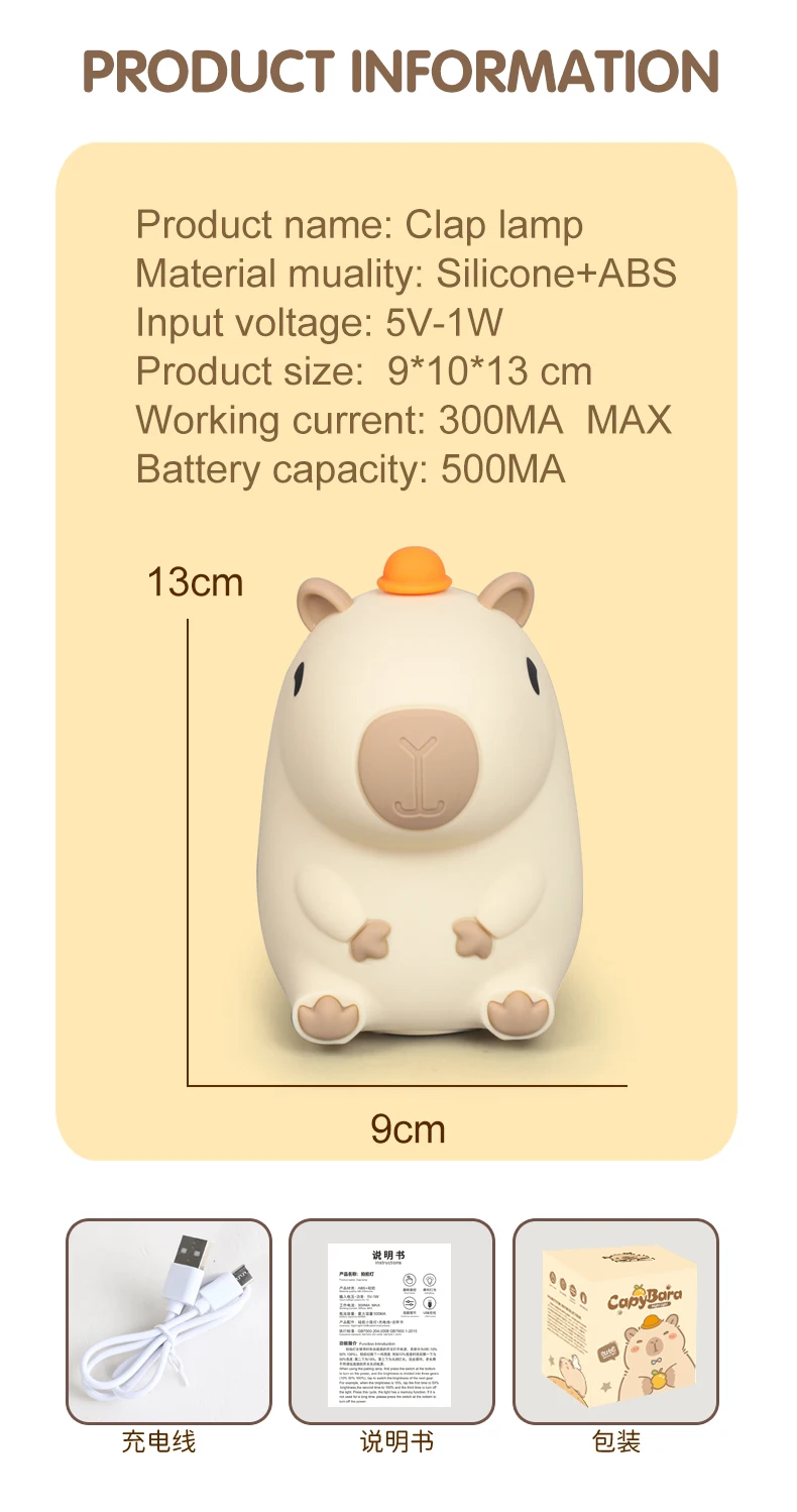 Are you in search of a unique and charming night light to illuminate your child's bedroom or add a touch of coziness to your living space? Look no further! Our USB – rechargeable capybara – shaped pat – on night light is the perfect solution.