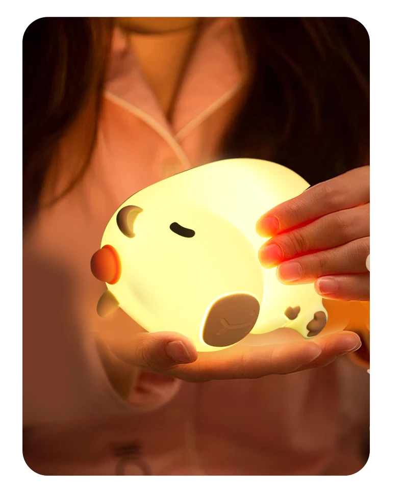 This night light is meticulously crafted in the shape of an adorable capybara. The soft silicone material gives it a lifelike texture, making it not only a functional lighting device but also an eye – catching piece of decor. Its cute and friendly appearance is sure to capture the hearts of kids and adults alike. Whether placed on a bedside table, a bookshelf, or in a nursery, it will instantly become the focal point of the room.
