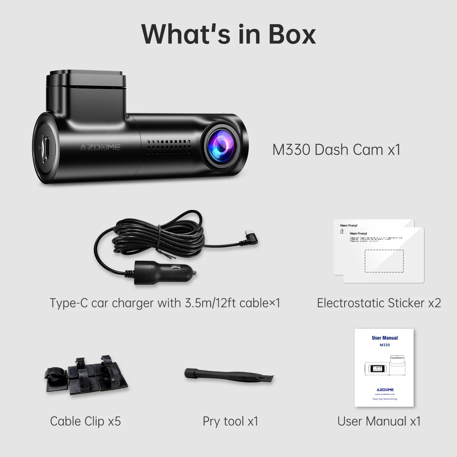 AZDOME M330 Car DVR 1080P Dash Cam Smart Voice Control WiFi Free APP G-sensor Emergency Record Parking Monitor Loop Recording