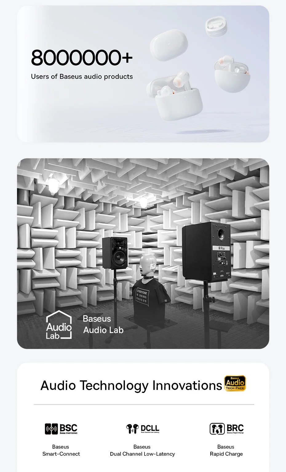 Bluetooth 6.0 and Baseus DCLL technology, ensuring a fast,stable wireless connection.
