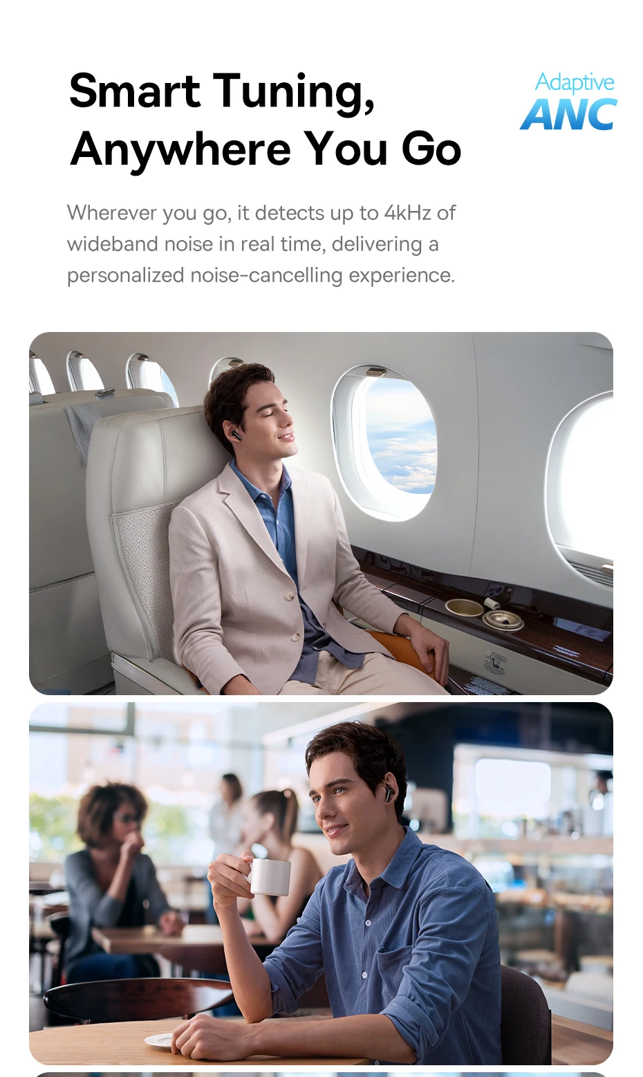 Wherever you go,it detects up to 4kHz of wideband noise in real time, delivering a personalized noise-cancelling experience.