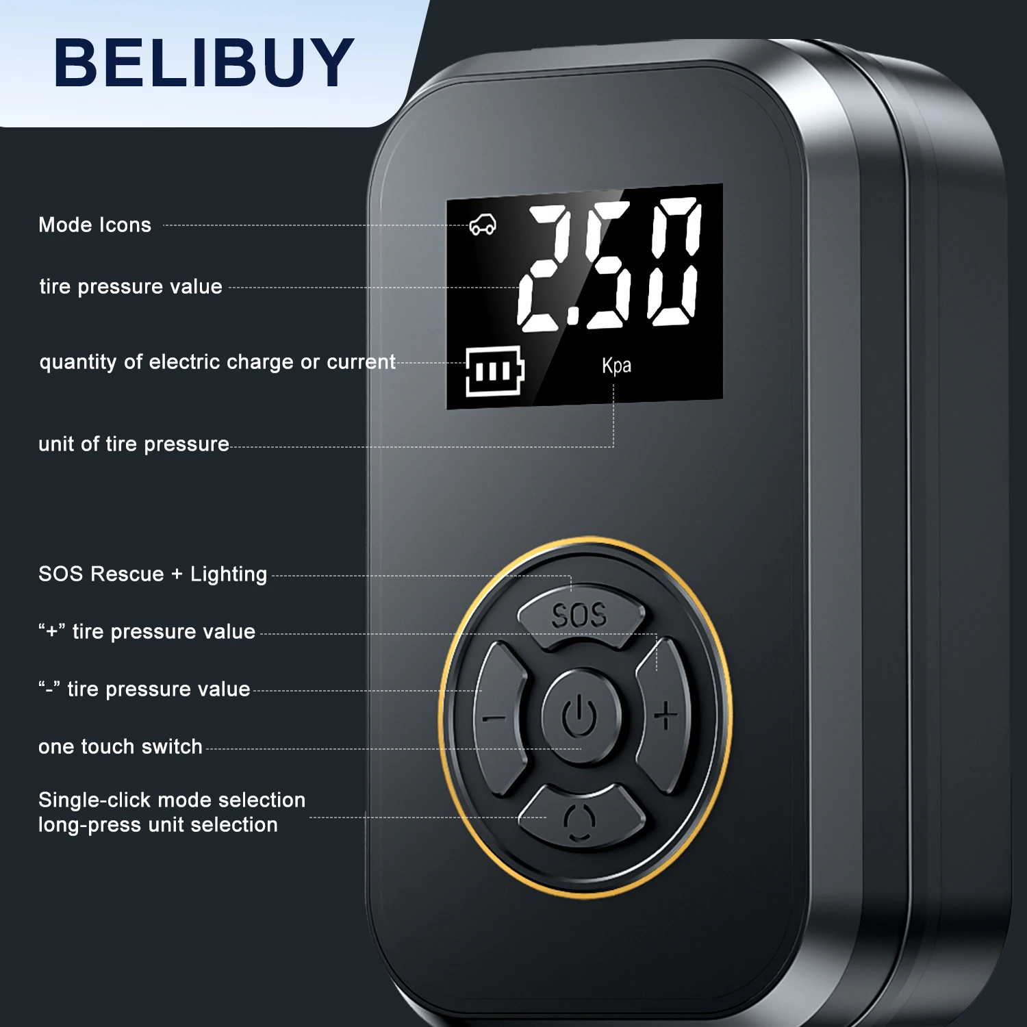 BELIBUY Portable Tire Inflator Rechargeable Electric Inflator For Car Bicycle Digital Air Compressor Football Ball Inflator Pump