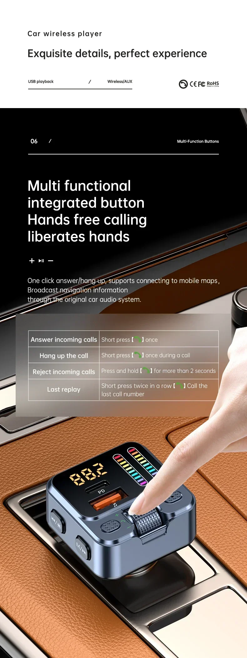1. In car Bluetooth hands-free phone system, one click answering and making calls
