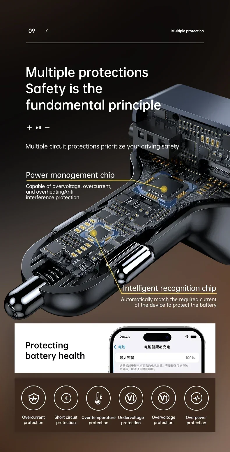 2. Automatic detection of car battery voltage, voice reminder, intelligent digital display