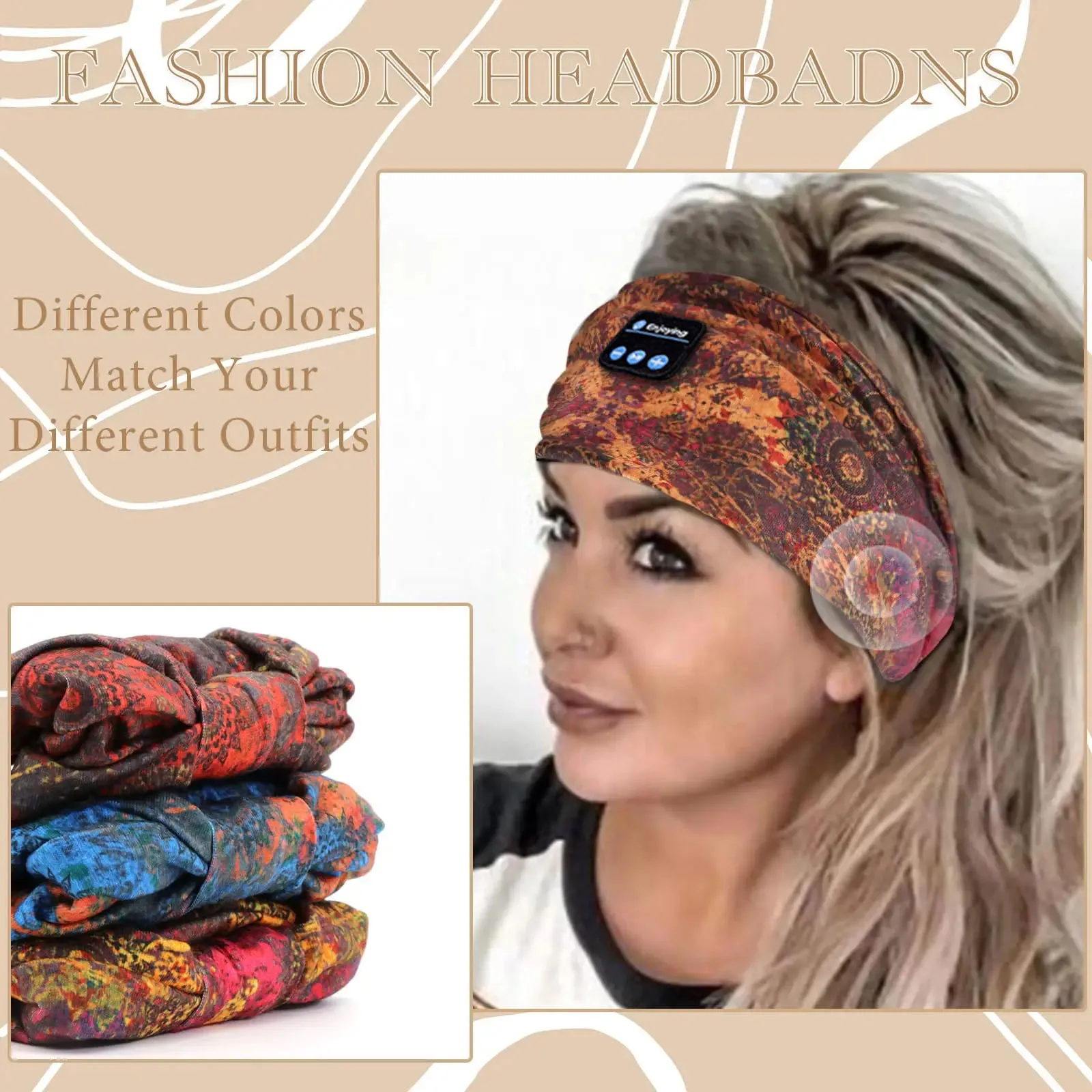 • Elastic Wireless Headband :The elastic wireless headband provides a comfortable fit for all-day wear, making it perfect for sports or sleeping.