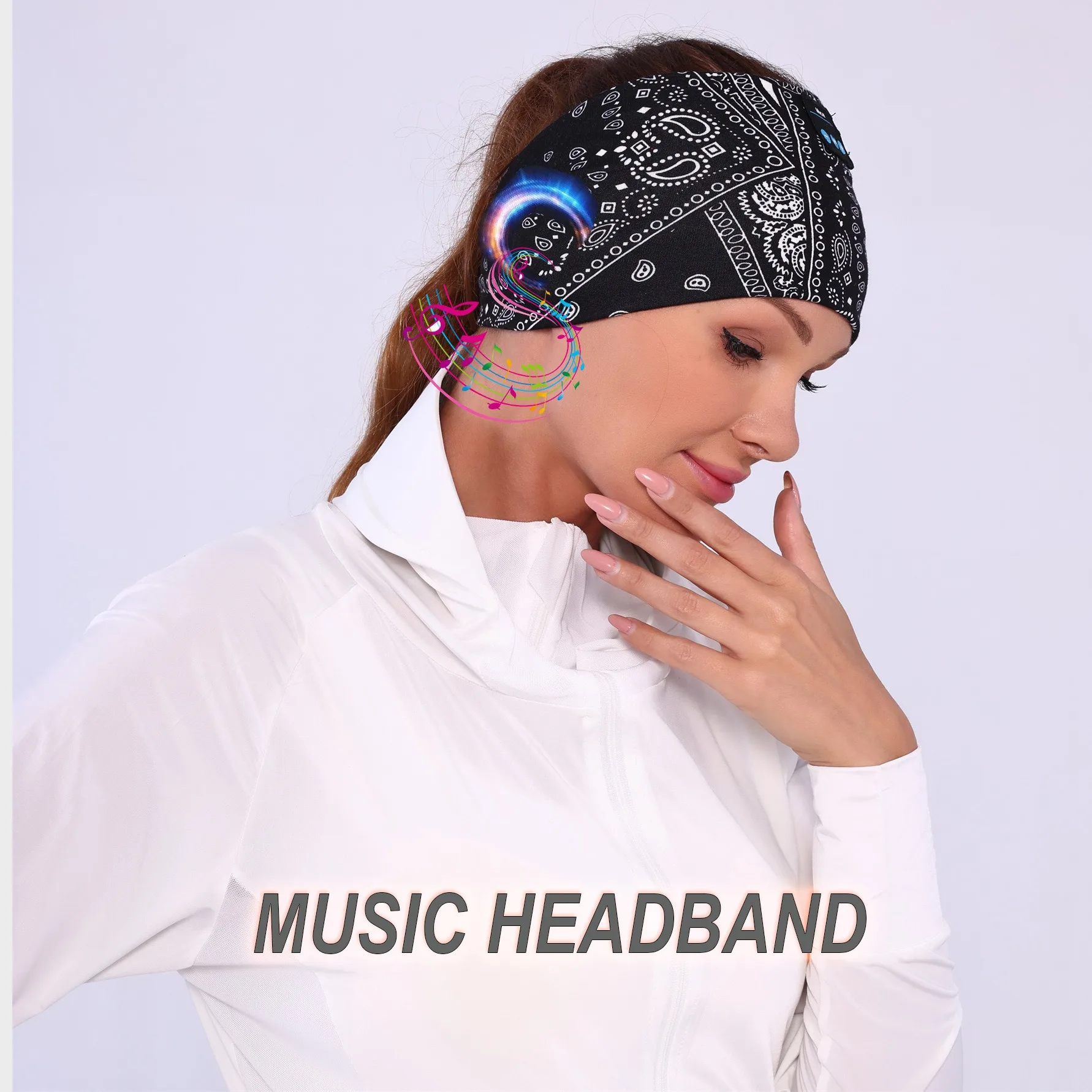 Wireless Bluetooth Earphone Headband Elastic Sports Music Headphones Eyemask Soft Comfortable with Microphone for Running Yoga