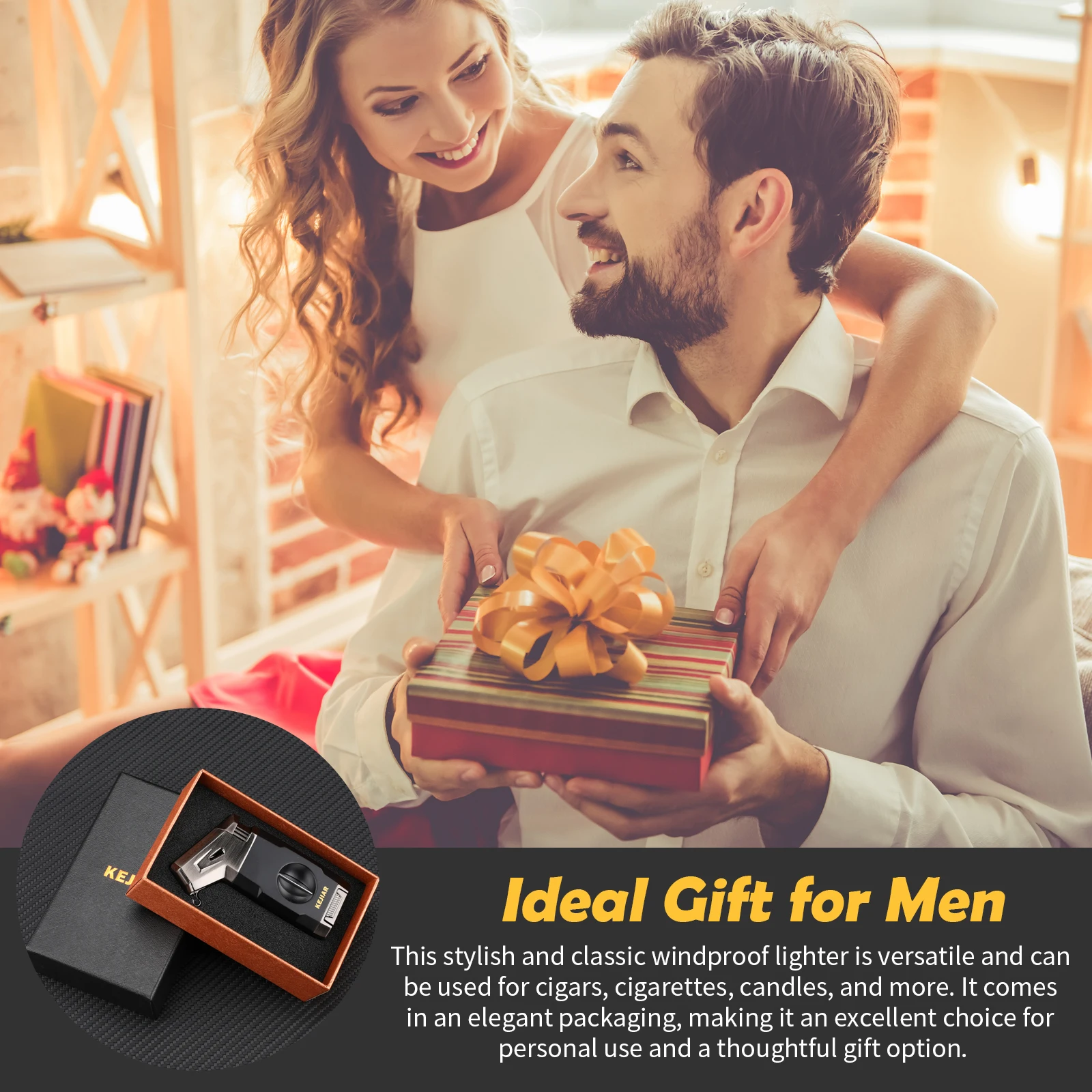 Unique Cigar Gifts: POCKET SIZED design,this multifunctional torch lighter is compact and portable,the dimension of 2.36*0.82*3.81in and weight 0.24lb.you can easily carry this lighter with you wherever you go.Its powerful windproof flame makes it suitable for a variety of scenarios,such as lighting candles,camping,fireworks,smoking.The creative appearance and come with BEAUTIFUL GIFT BOX PACKAGING make it an ideal gift choice for occasions like Christmas,Father's Day,birthdays,and Thanksgiving