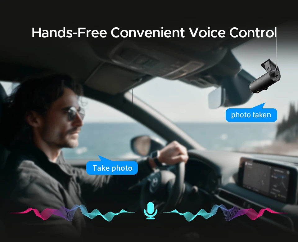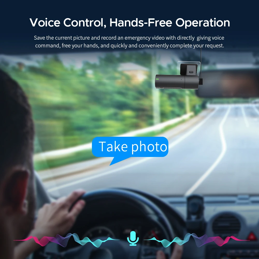 Control your dashcam effortlessly with simple voice commands. No need to take your hands off the wheel or press any buttons. Like, say: take photo–3K D6 will capture real-time footage immediately