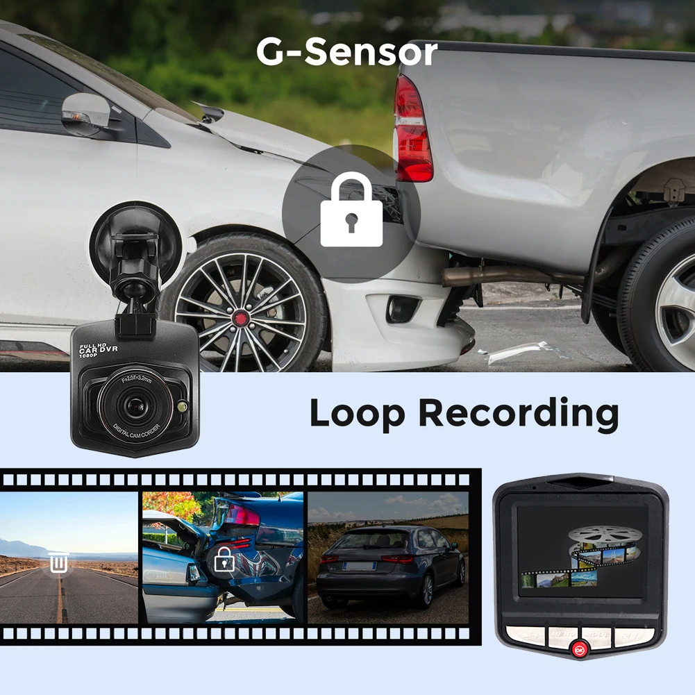 Car DVR Suction Cup HD 1080P Vehicle Video Recorder Circle Recording Driver Recorder 2.4 Inch LCD Screen Motion Detection G-Sensor