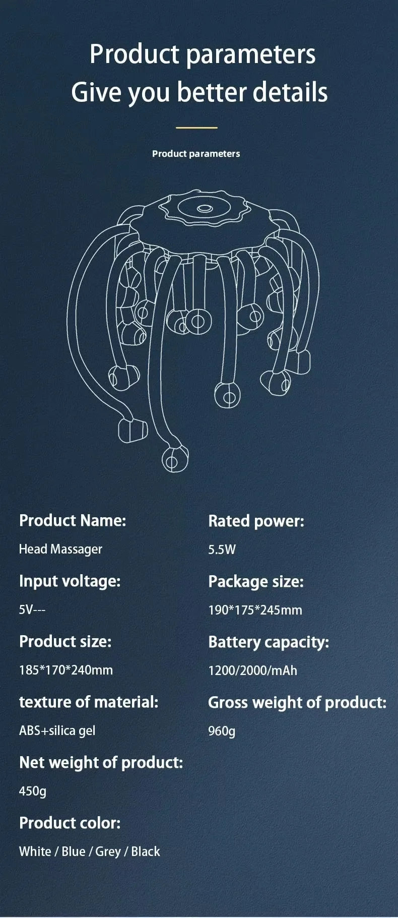 20 Vibrating Contacts:Equipped with 20 vibration contacts, this head massager delivers a 360° deep massage experience.