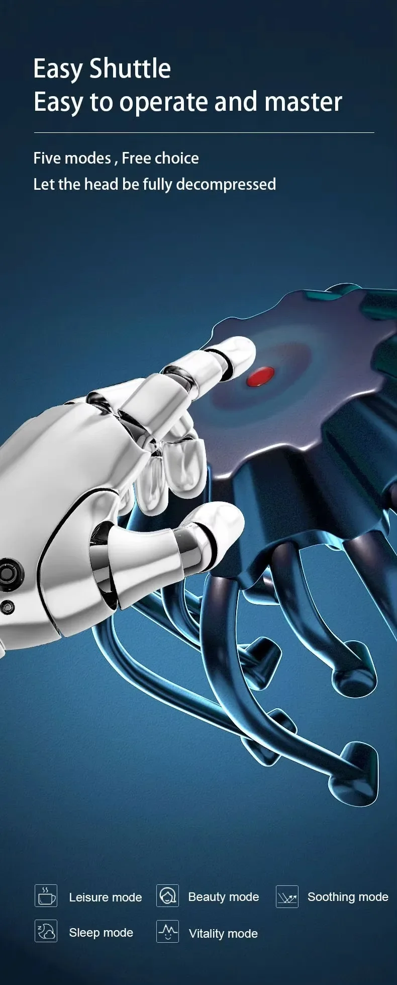Electric Octopus Claw Scalp Massager Hands-free 5Modes Head Massage LED Red Light 3D Wireless Head Scratcher Massage Health Care