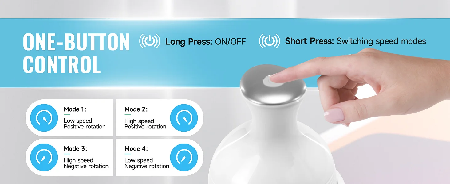 4 Working Modes: Built-in 500 mAh battery, long battery life, Charge 2.5 hours,Work 10 minutes a day, last 10 days. 10 minutes automatic power off protection.This scalp massager has 4 working modes, clockwise rotation low speed and high speed, counterclockwise rotation low speed and high speed.