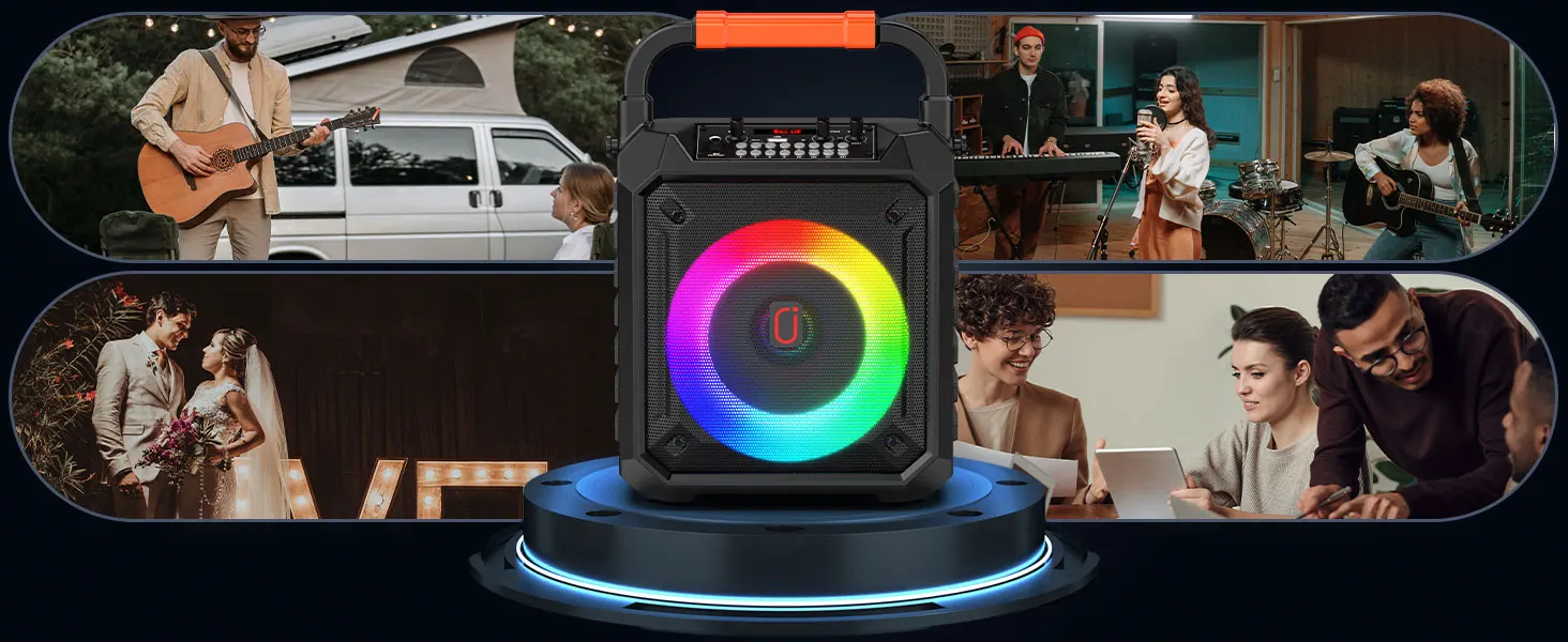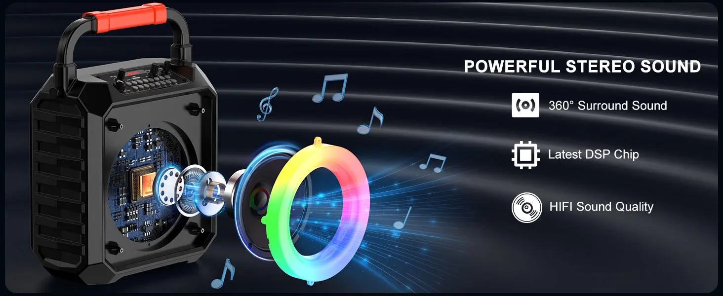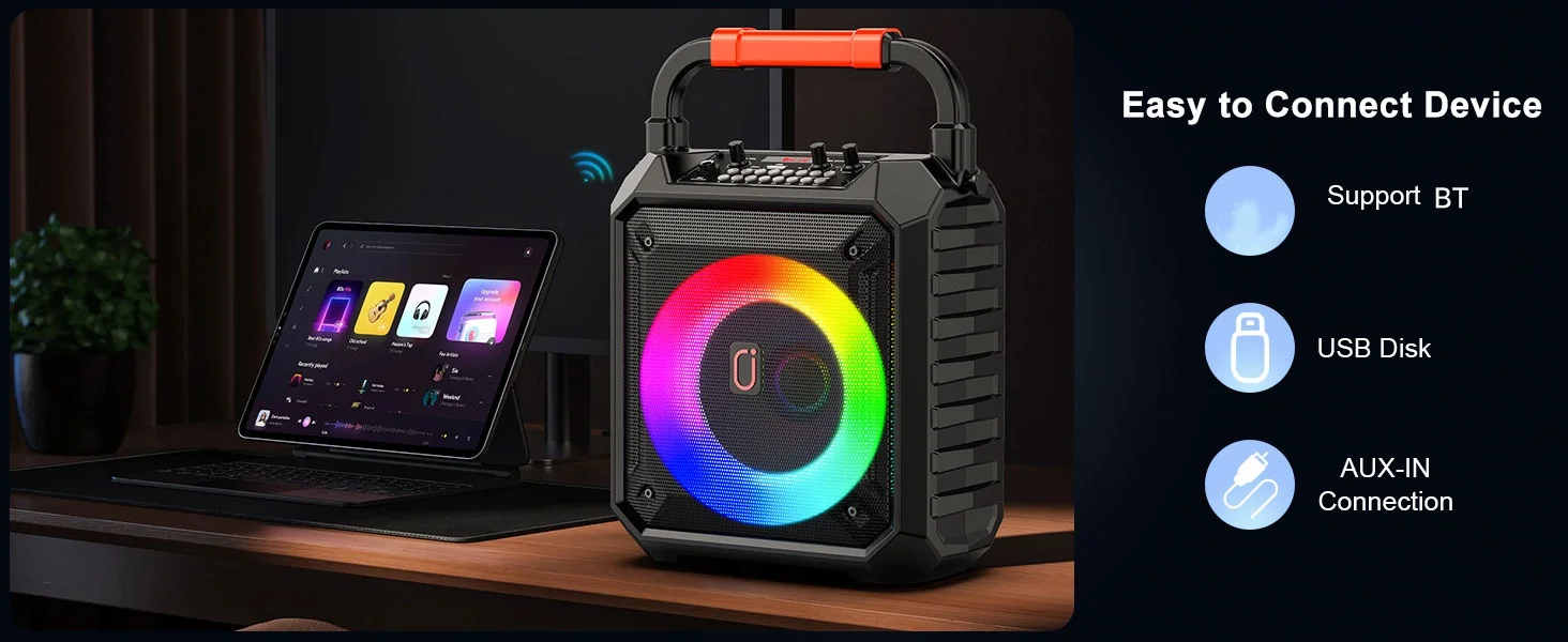 • Colorful Disco Lights: The dazzling LED lights will creat a fun and romantic karaoke and party atmosphere. With colorful adjustable LED lighting patterns sync with music, creating a captivating stage effect and party atmosphere. Let bring out the singer in you with this karaoke party system!