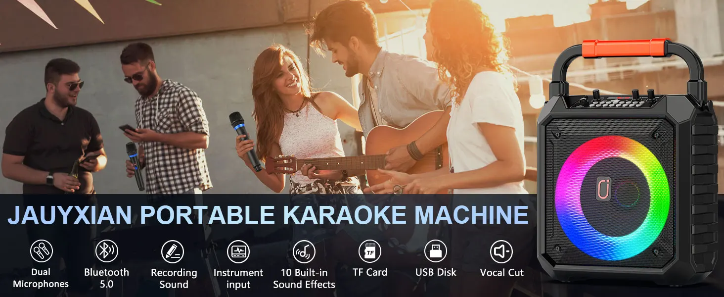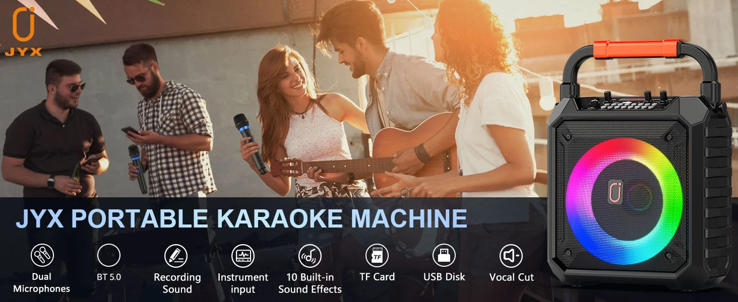 • ALL-in-One Karaoke Machine: Our JYX Karaoke machine Equipped with 2 wireless karaoke microphone, easy volume control, and flashing LED lights. It's suitable for all ages and guarantees hours of fun and entertainment.Perfect for parties, family karaoke, weddings, gatherings outdoor/indoor activities.