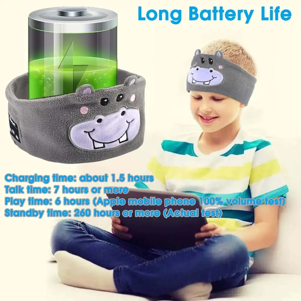 JINSERTA Cute Kid Bluetooth Headphone Sleep Mask Bluetooth 5.0 Stereo Music Player Support Handsfree Soft Headband for Smartphone