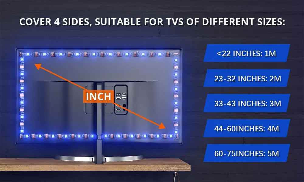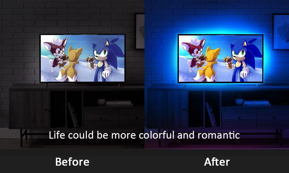 USB powered light strip can be easily installed behind TV. Unique stronger foam adhesive and buckle clips make sure the led strip better fixation on your TV.