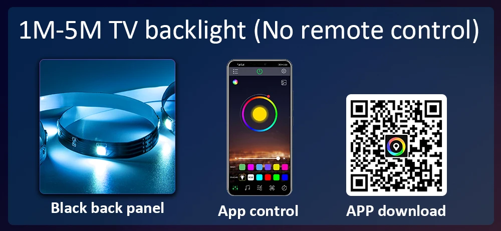 1M-5M TV backlight(No remote control), APP is HappyLighting or Hi Lighting