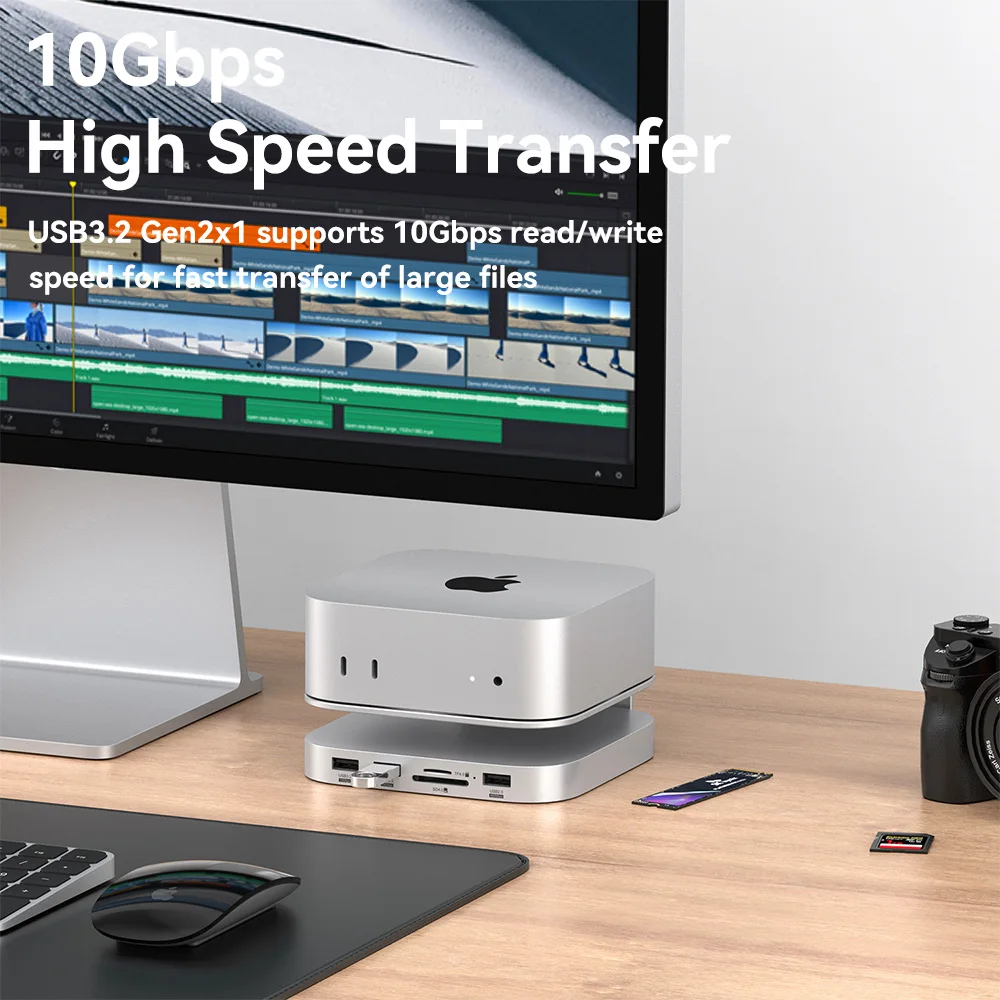 Has multiple interfaces to meet multiple needs. Same size, alloy material, plug and play, light, solid, fast heat dissipation, more suitable for your 2024 Mac Mini M4/M4 Pro