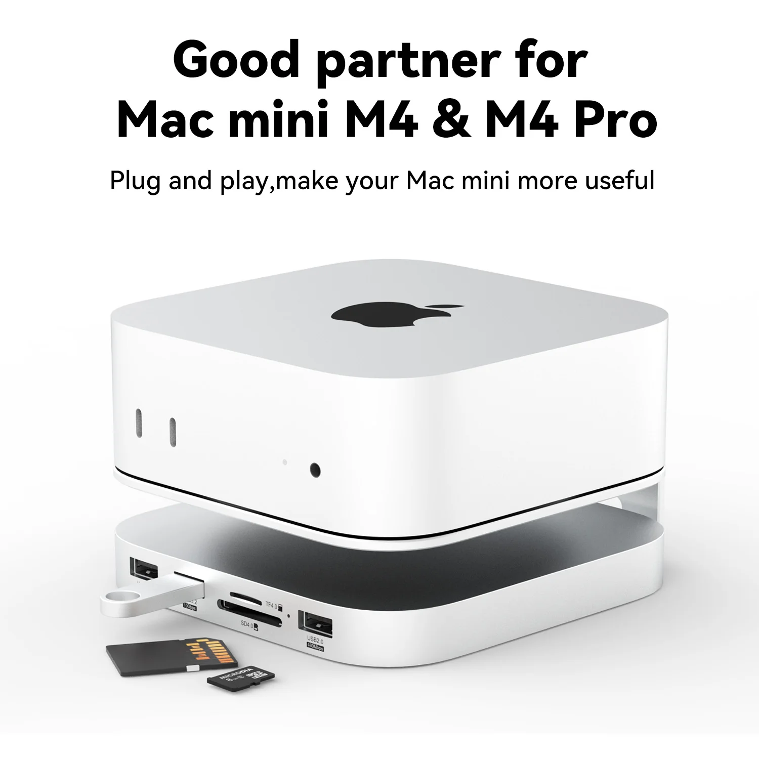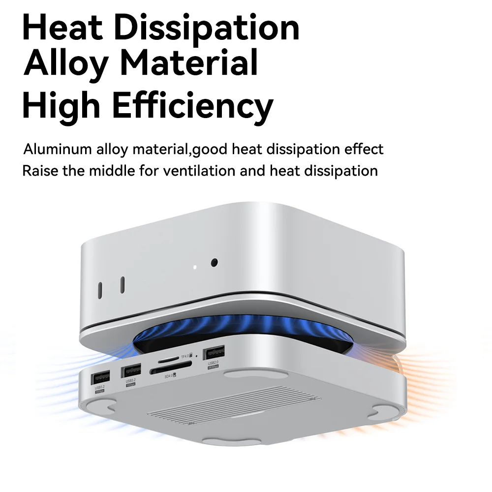 Has multiple interfaces to meet multiple needs. Same size, alloy material, plug and play, light, solid, fast heat dissipation, more suitable for your 2024 Mac Mini M4/M4 Pro