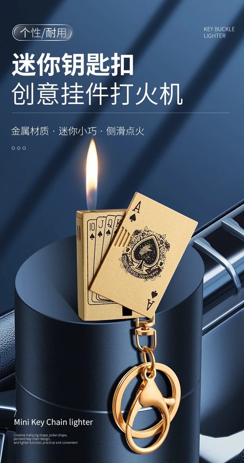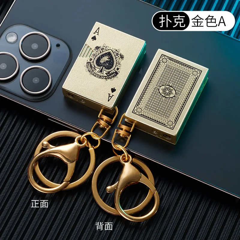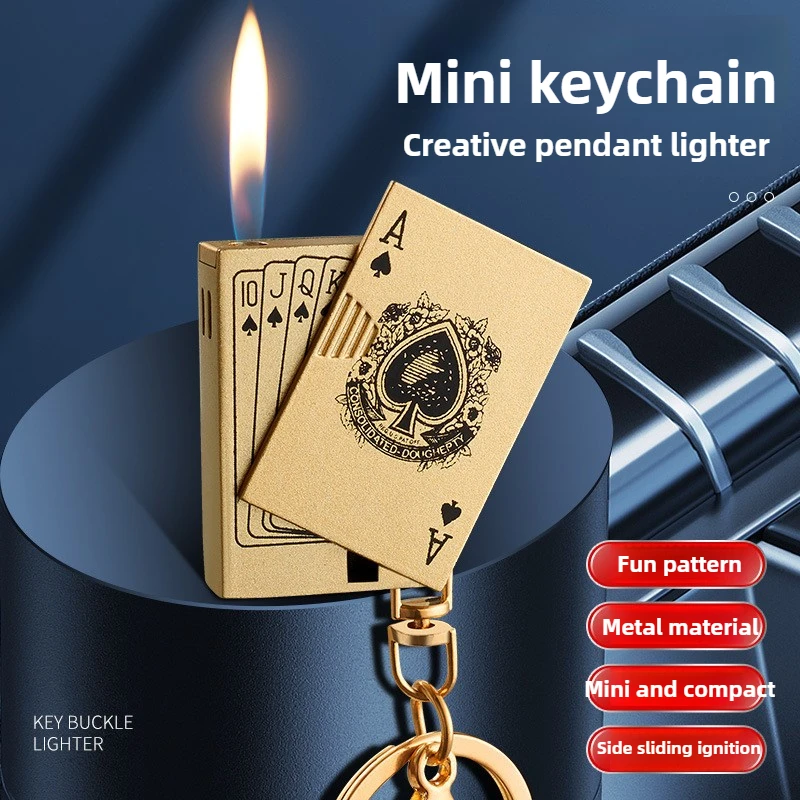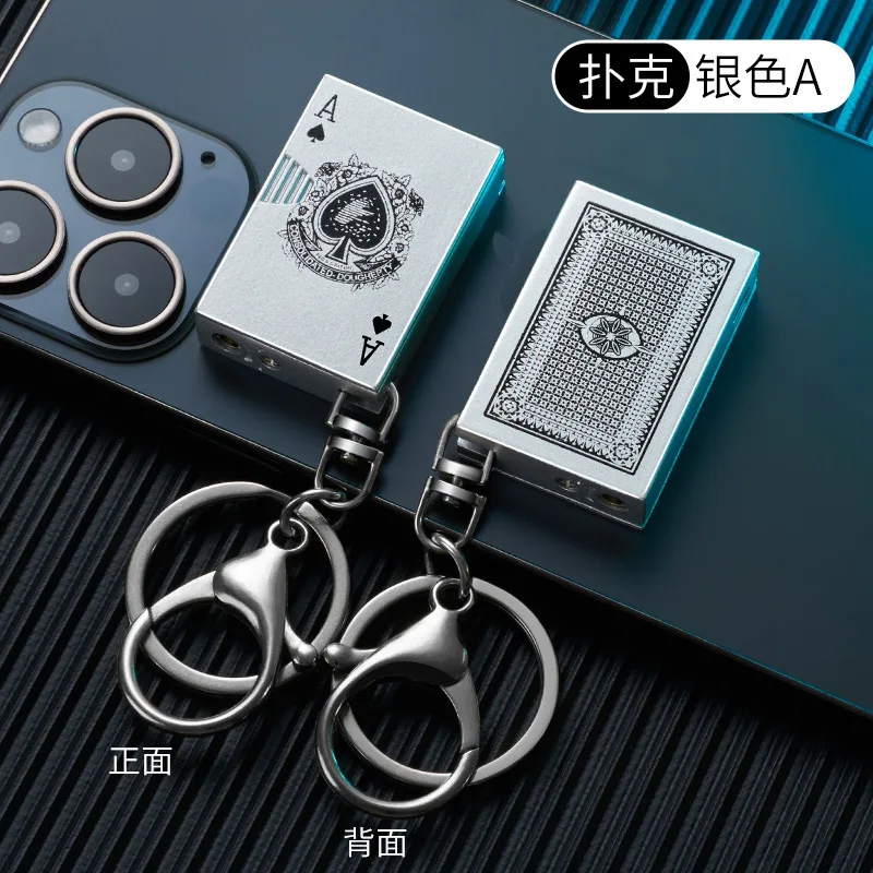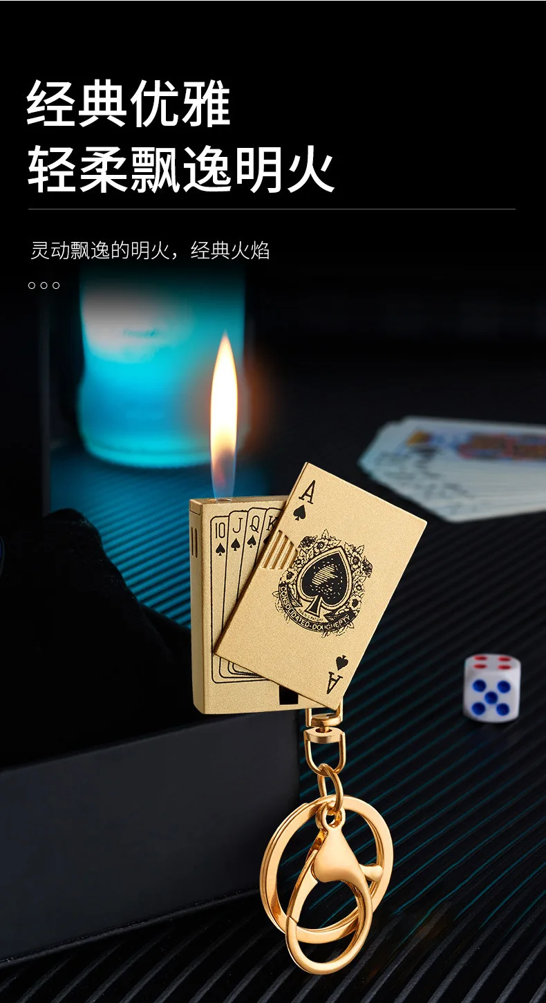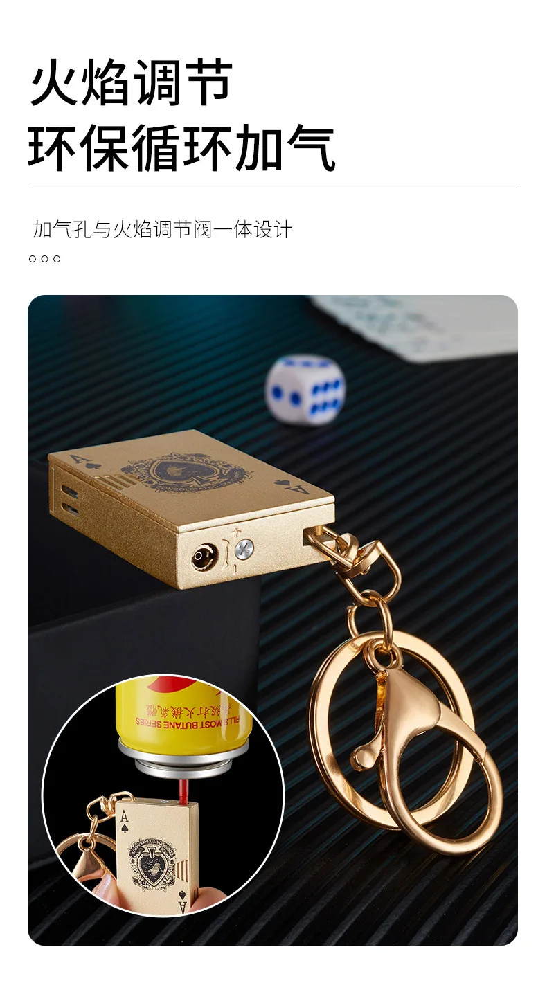 Metal Playing Cards Jet Flame Poker Lighter Novelty Torch Turbo Butane Gas Lighters Creative Windproof Outdoor Lighter Key Chain