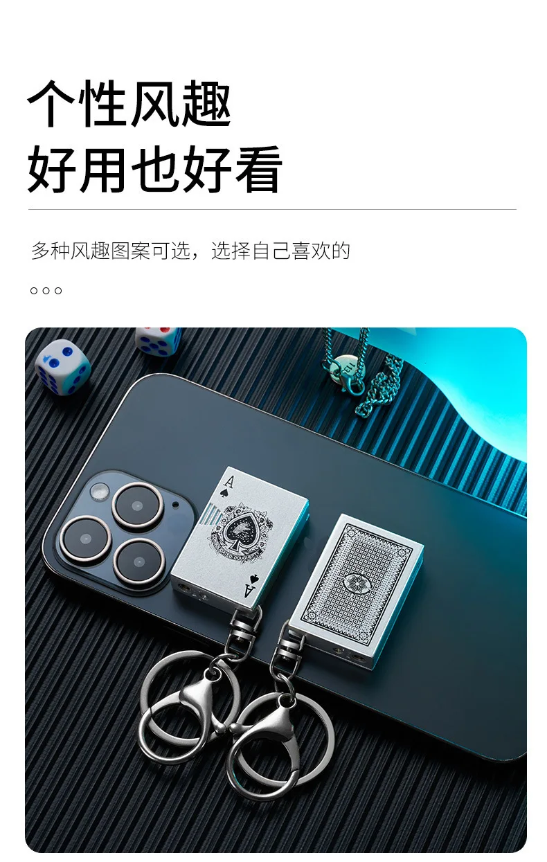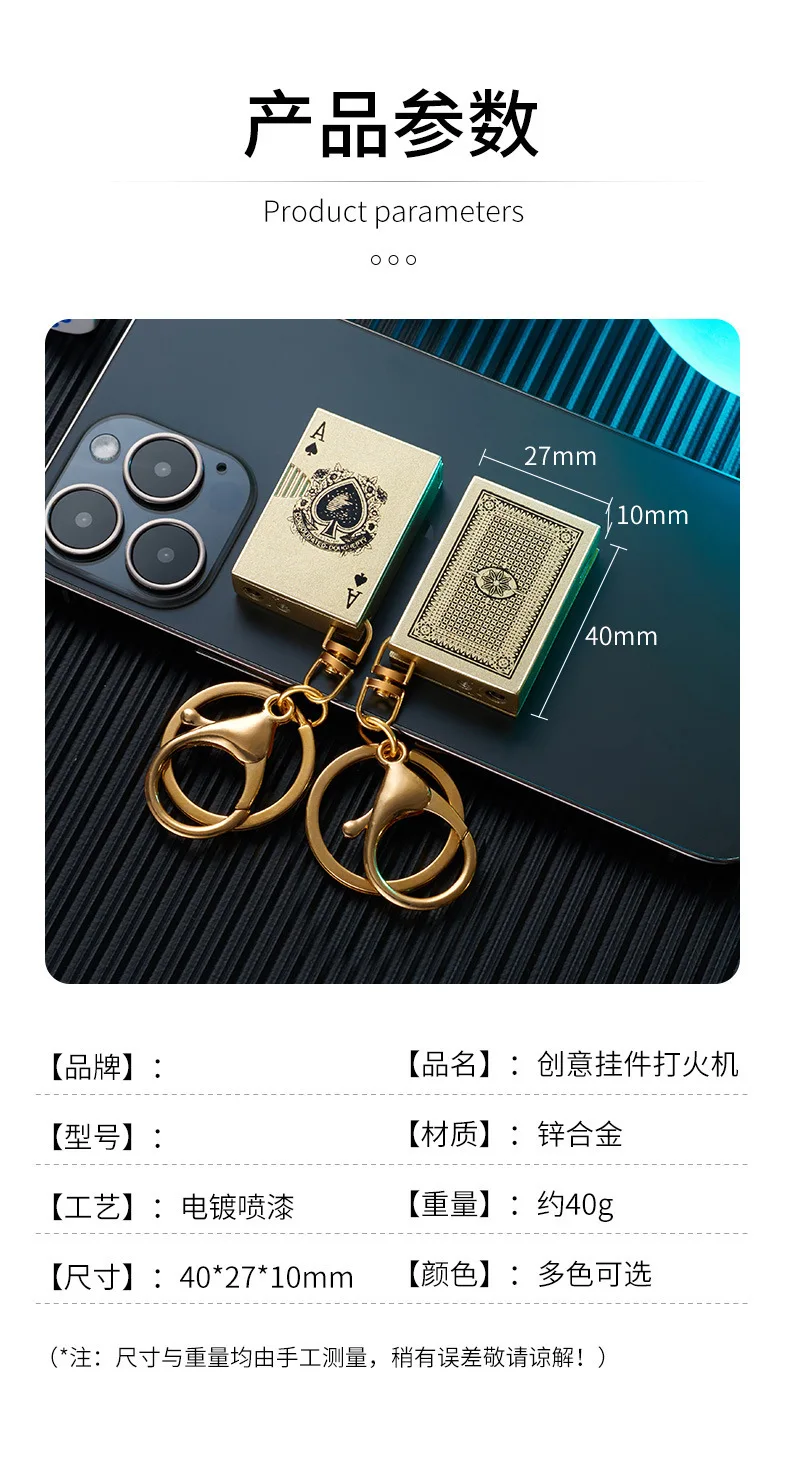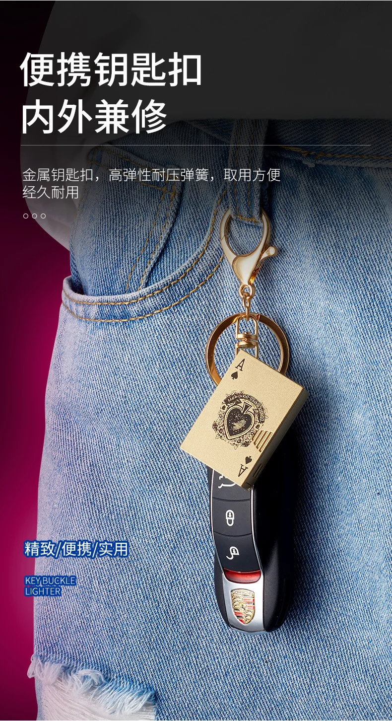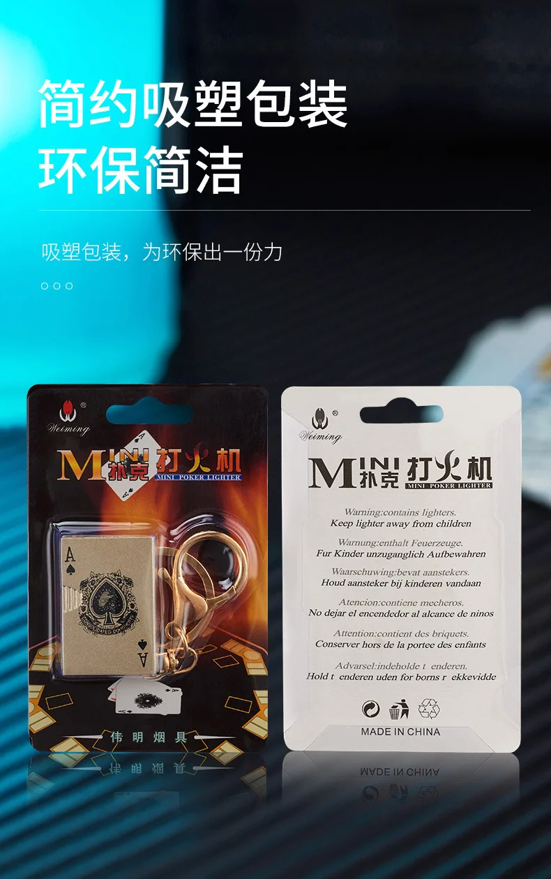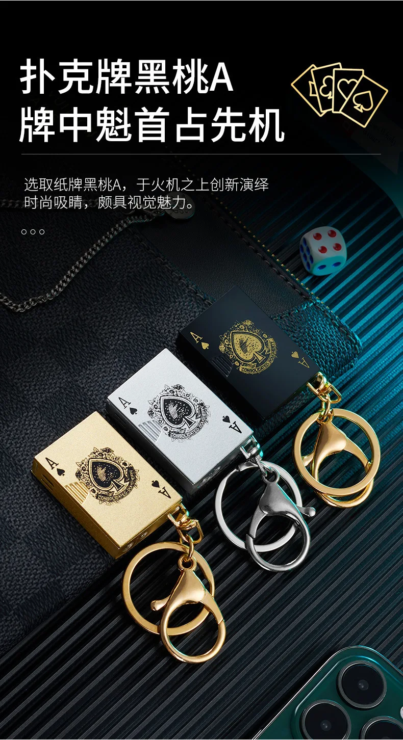 Metal Playing Cards Jet Flame Poker Lighter Novelty Torch Turbo Butane Gas Lighters Creative Windproof Outdoor Lighter Key Chain