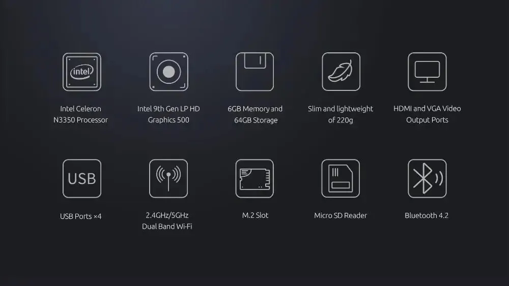 MLLSE M2 Mini PC Intel N3350 CPU 6GB RAM 64GB SSD WiFi5 BT4.2 Windows 10 Mini Desktop Computer