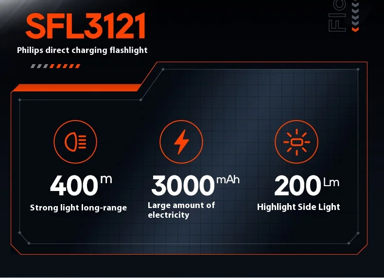 Philips new SFL3121 flashlight strong searchlight with side light can be used for a variety of lighting