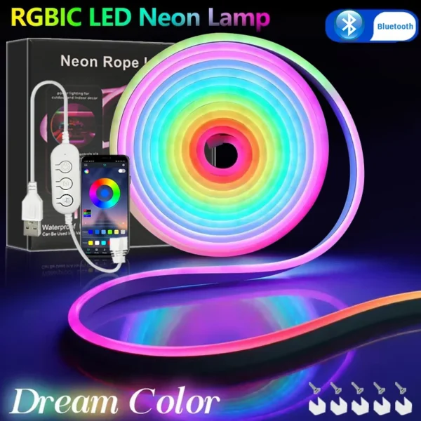 RGBIC Neon LED Strip 1/2/3/5M IP65 Waterproof DIY USB Neon Strip Bluetooth App Control Flexible Ribbon for Home Decor Lighting