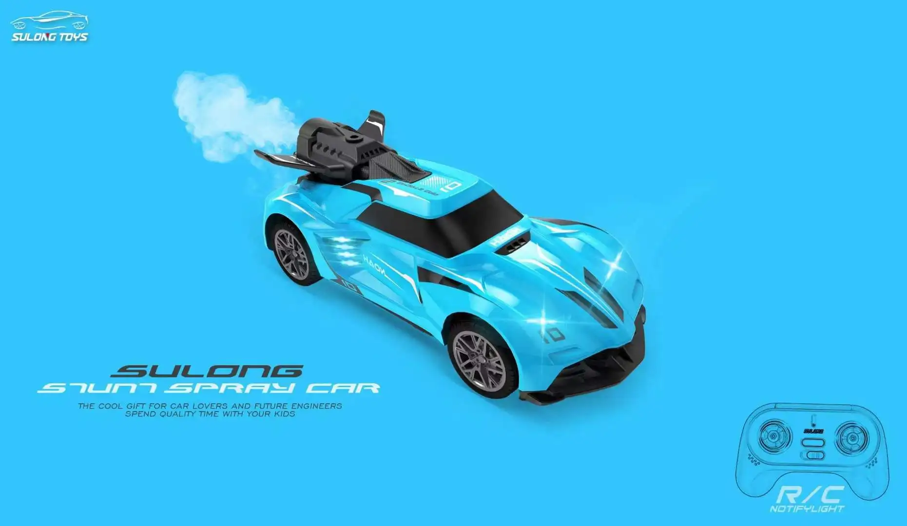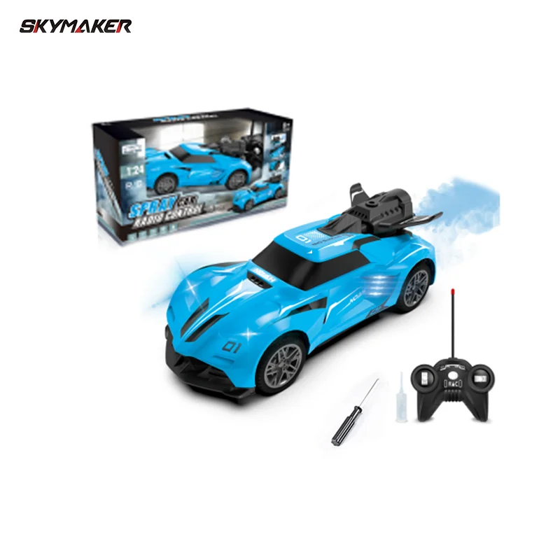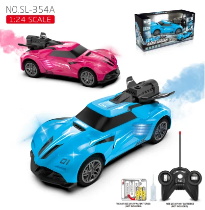 RC Car 1/24 2.4Ghz Remote Control Racing Vehicle 2WD with LED Light Spray Smoke Stunt Electric Remote Control Car for Kids