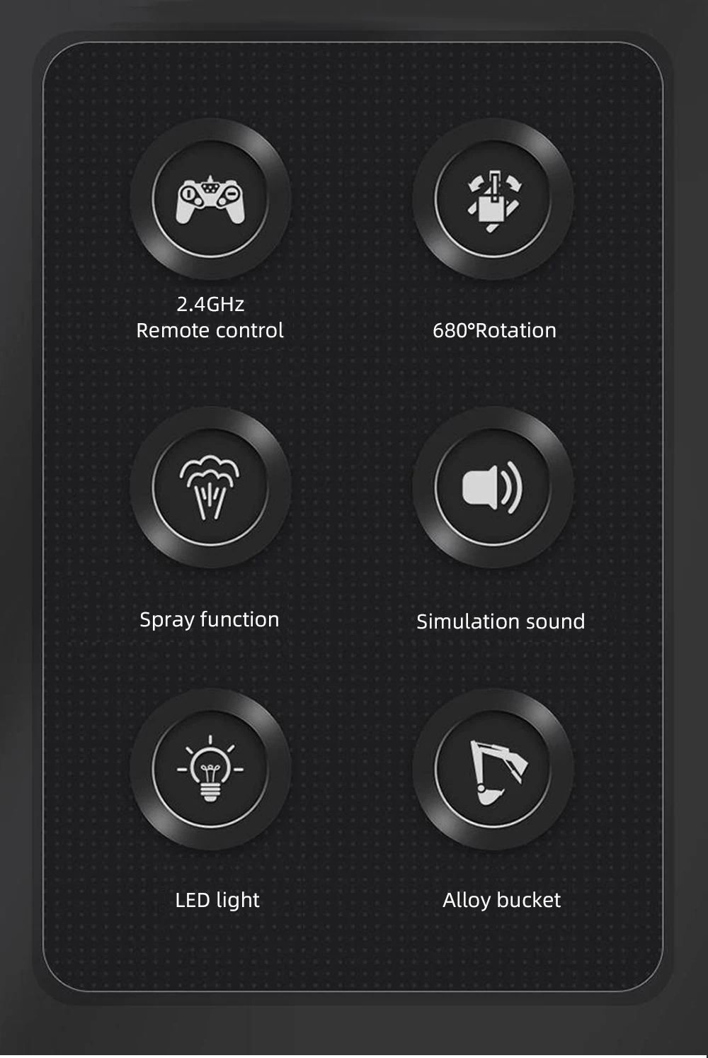 17 channels: front and back, left and right, digging, unloading, moving up and down, spray opening and closing, one-button demonstration, table to the left and right remote control 680 degrees