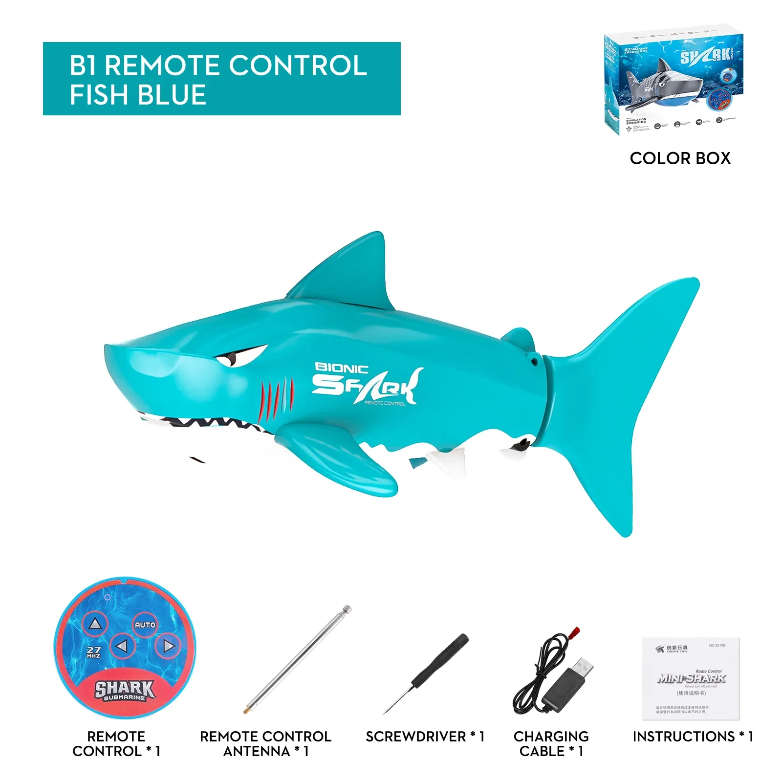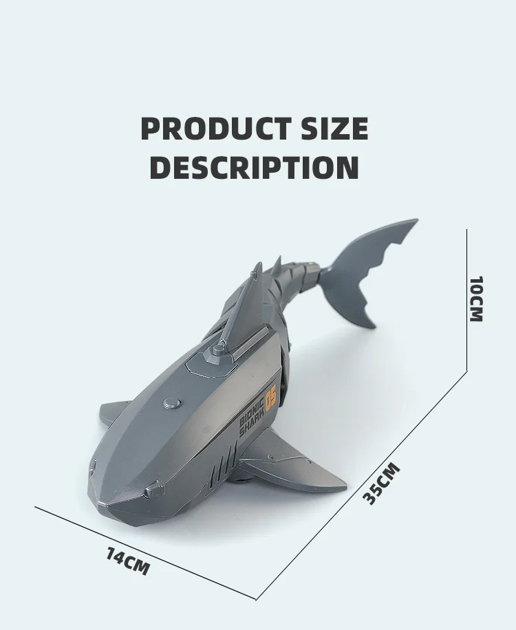 2.4G remote control shark main function: can many people compete at the same time (no interference), imitate the swimming action of fish. Swimming on the water.