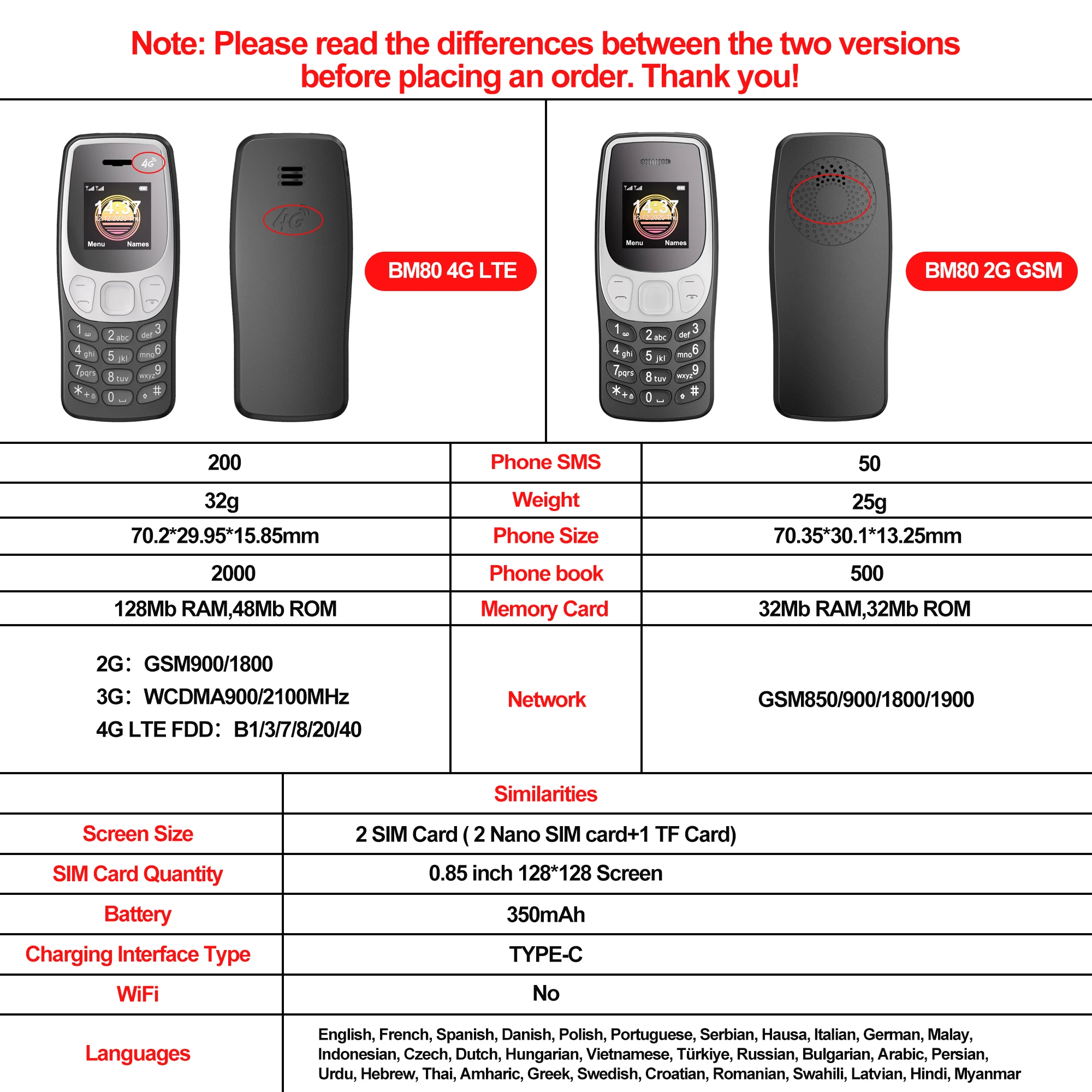 Please carefully check the languages supported by your phone, as some countries and regions' languages do not match it. Please verify before purchasing. We will not be responsible for any future disputes related to language.