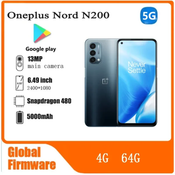 Oppo Oneplus Nord N200 5G 4G 64G SmartPhone Qualcomm Snapdragon 480 Battery capacity 5000mAh 13MP Camera full screen used phone