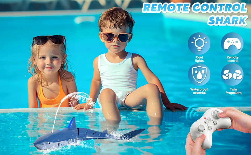 THE REMOTE-CONTROLLED SHARK BOAT MUST BE IN THE WATER TO RUN